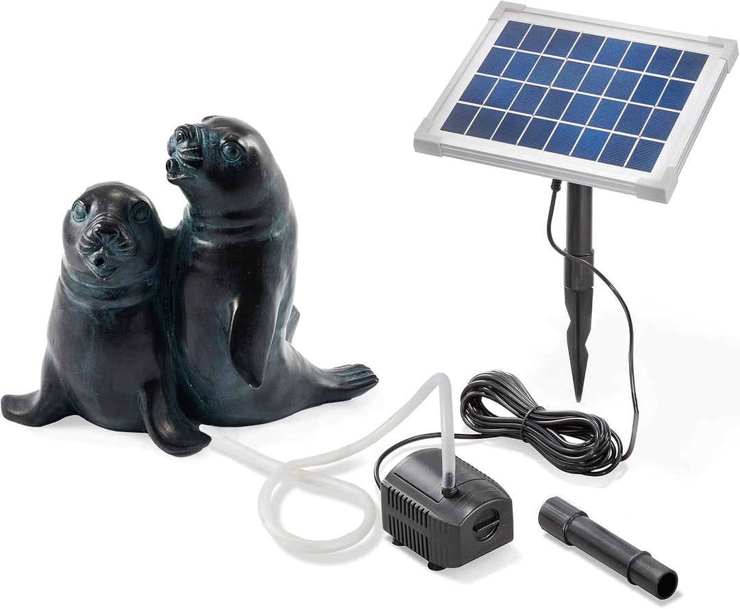 Solarbetriebener Wasserspeier Seehundpaar - inkl. Solar Teichpumpe 5 Watt 250 l/h - Masse ca. 200 x