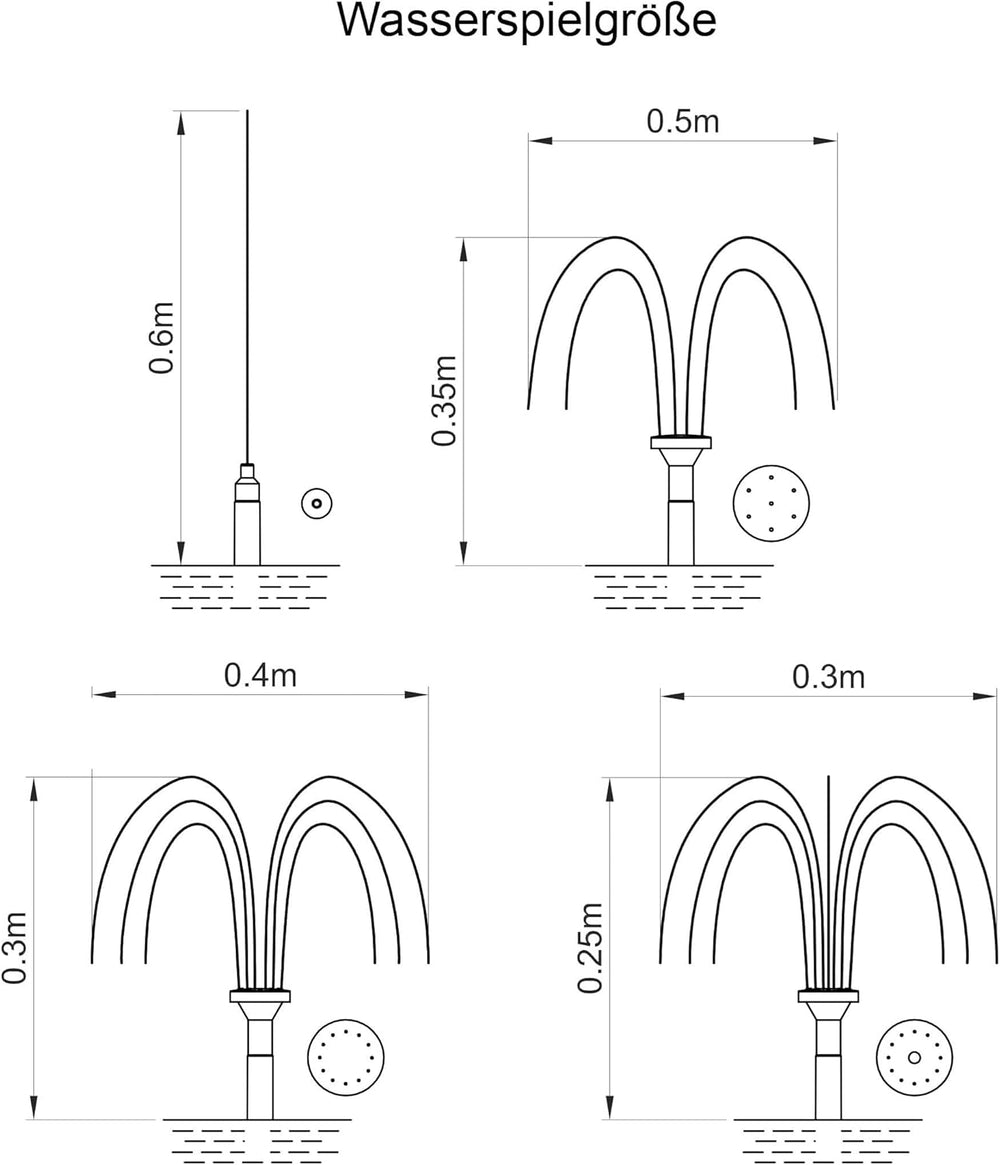 • Ideal für den Betrieb in kleinen Teichen, Brunnen etc. Ein Schlauch kann angeschlossen werden!