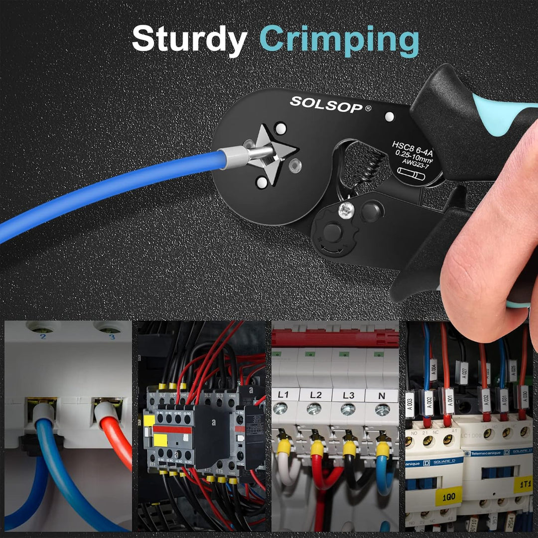 - Aderendhülsen-Set – kommt mit einer Aderendhülsen-Crimpzange, selbsteinstellenden Abisolierzangen 20,3 cm und 1250 isolierten Kabelklemmen zur Unterstützung kleiner DIY-Projekte und grosser elektrischer Reparaturen