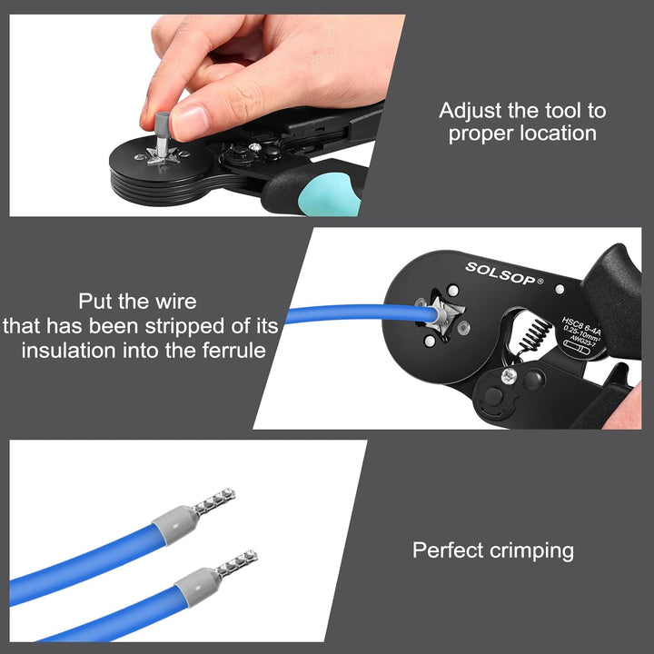 - Aderendhülsen-Crimper und Abisolierwerkzeug – für isolierte und unisolierte Hülsenklemmen und Steckverbinder, der Crimpbereich beträgt 0,08–10 mm² (AWG 28–7); verwenden Sie dieses multifunktionale 3-in-1-Abisolierwerkzeug, um Draht schnell und