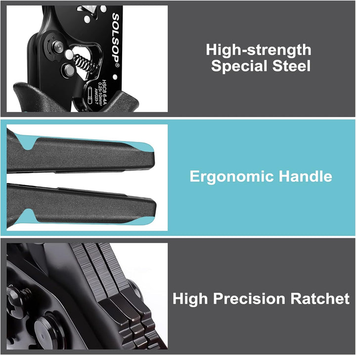- Ergonomisches Griff-Design – arbeitssparender Ratschenmechanismus. Der rutschfeste Nylon-Griff ist gut entworfen, um Ihnen eine einfache Bedienung und stabile Crimps zu bieten