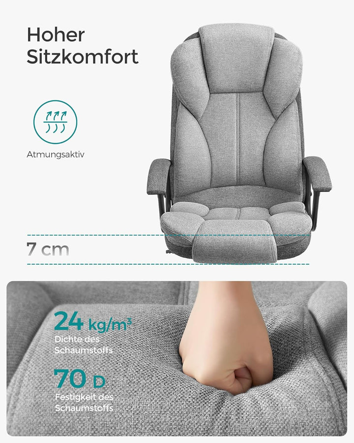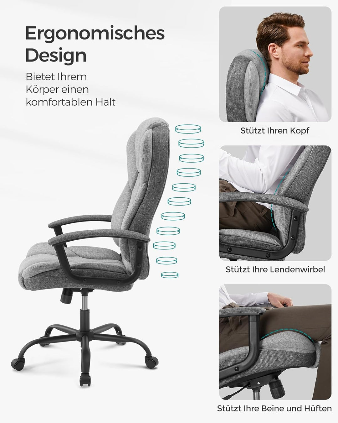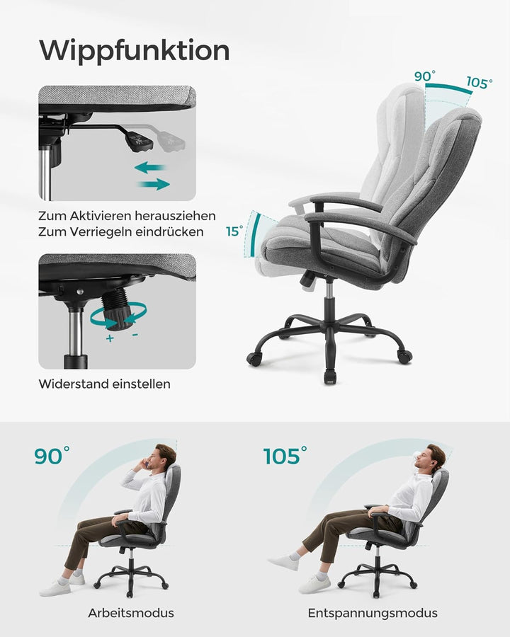- [Stabiler Halt] Mit dem sicheren Gasdruckzylinder, dem hochwertigen Metall-Fusskreuz und den optimierten Schrauben, die auch nach längerem Gebrauch nicht leicht locker werden, bietet der Computerstuhl zuverlässigen Halt und trägt bis zu 150 kg