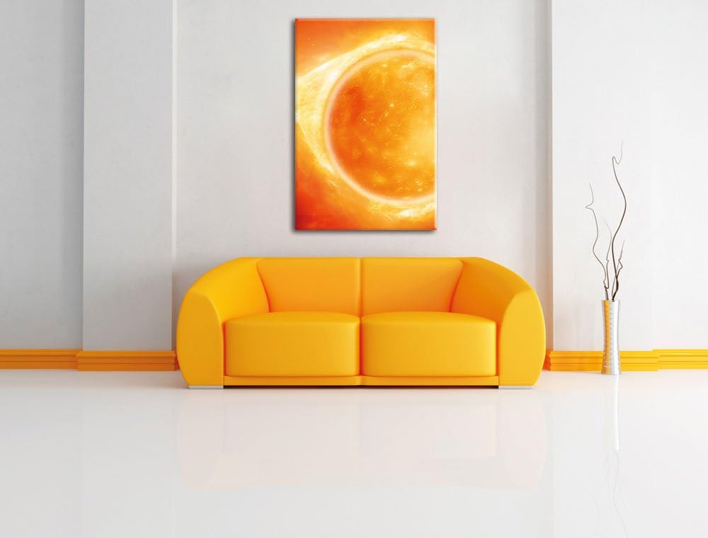 Sonne Feuerball, Format: 100x70 auf Leinwand, XXL riesige Bilder fertig gerahmt mit Keilrahmen, Kuns