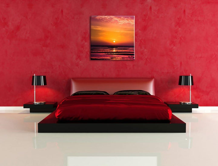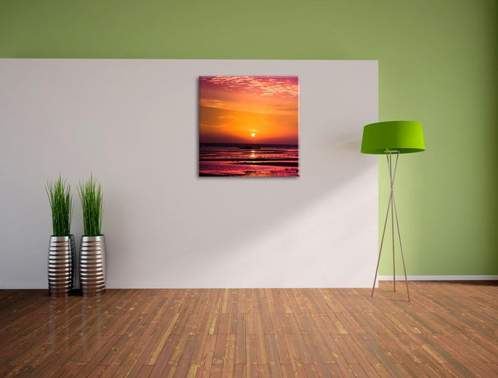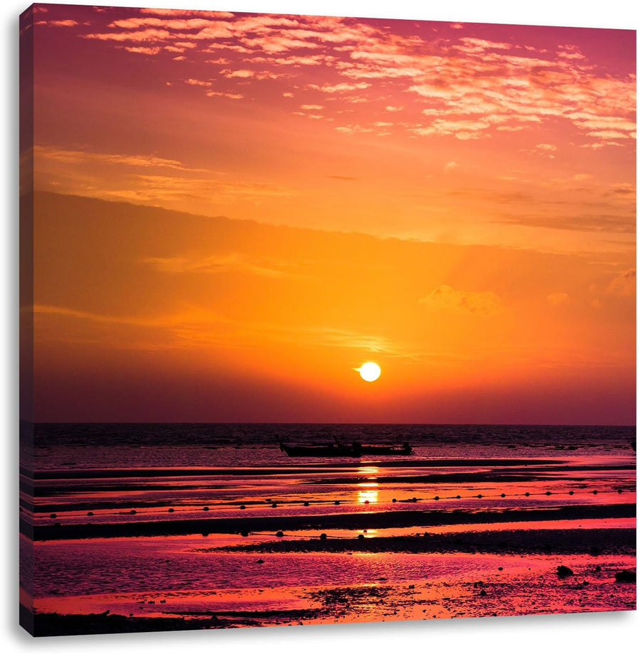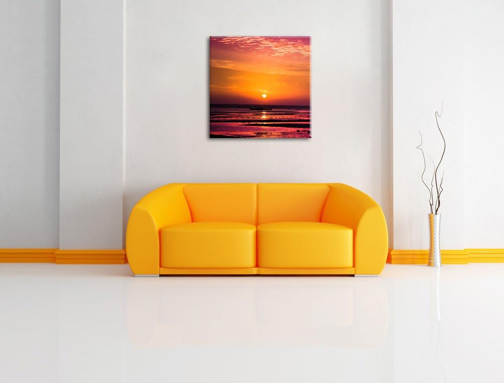 Sonnenaufgang über Meer, Format: 70x70 auf Leinwand, XXL riesige Bilder fertig gerahmt mit Keilrahme