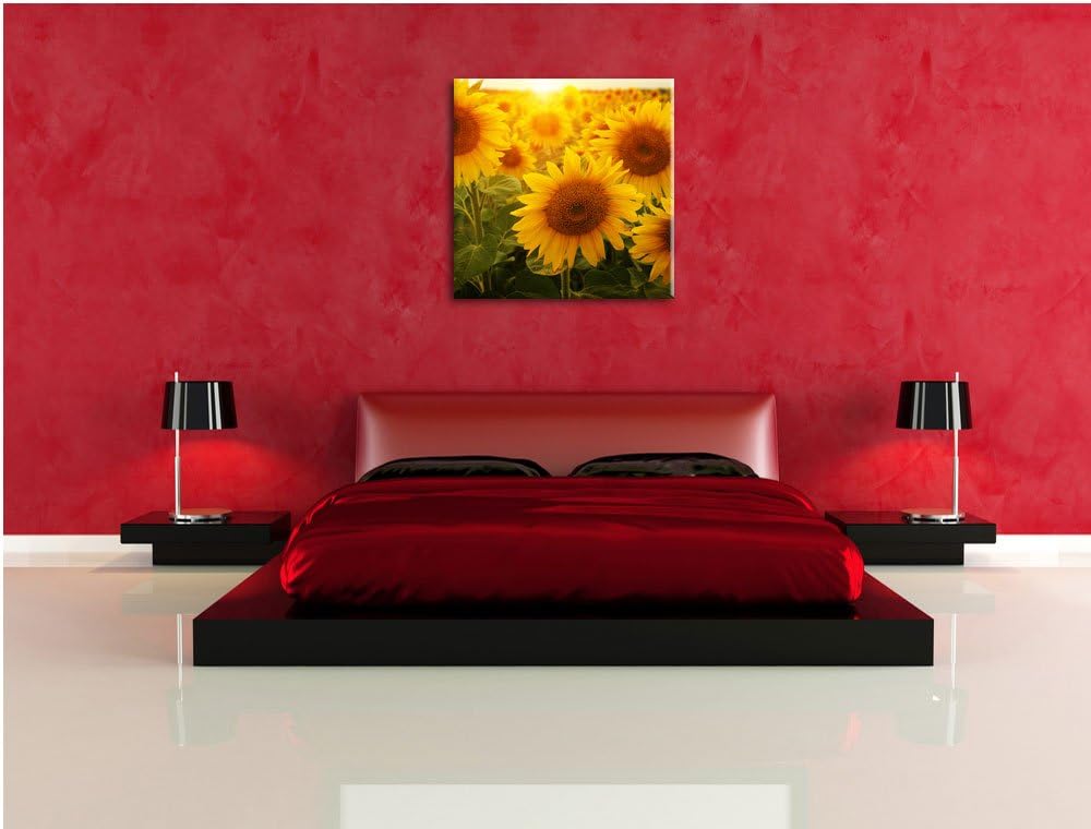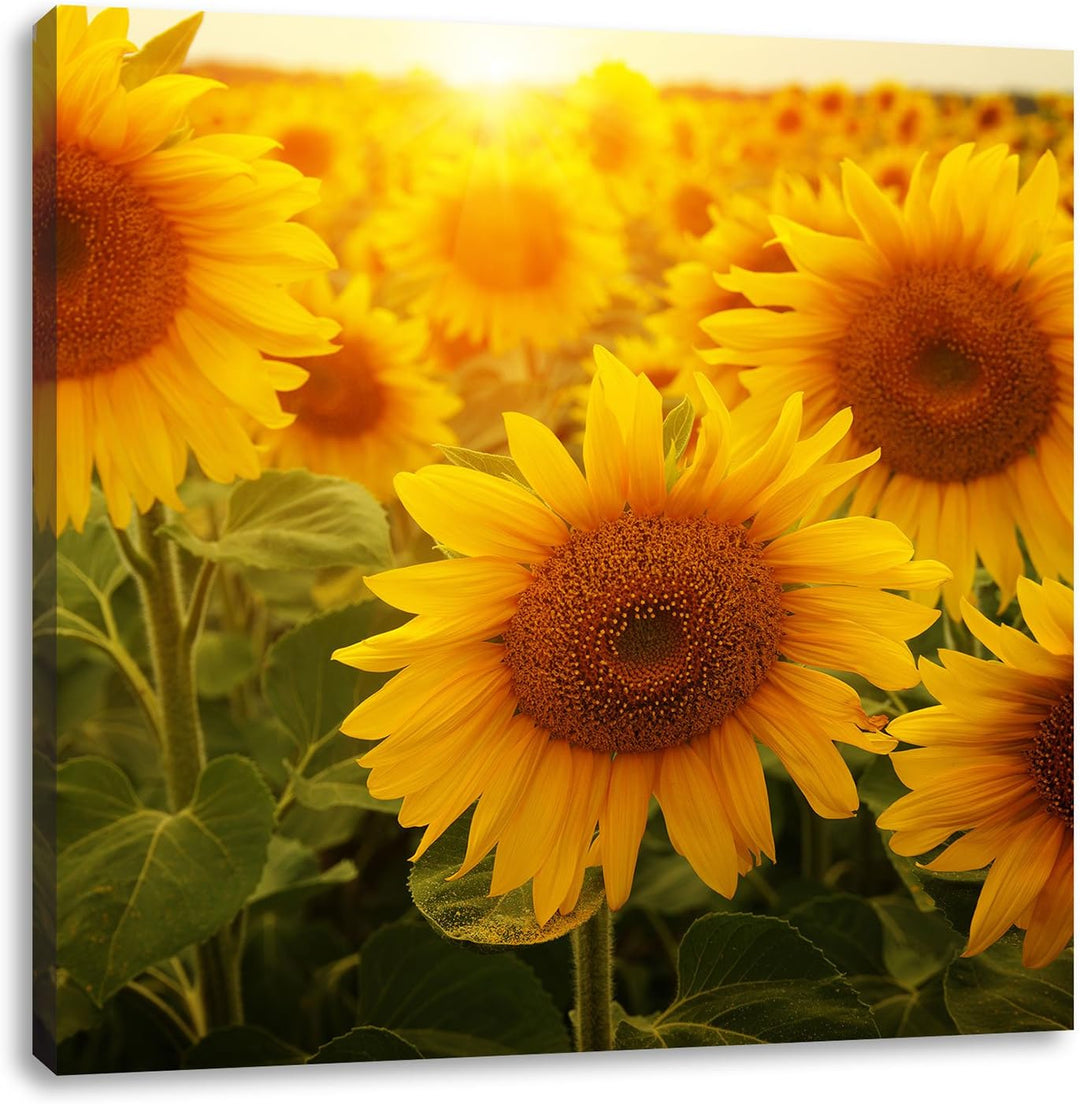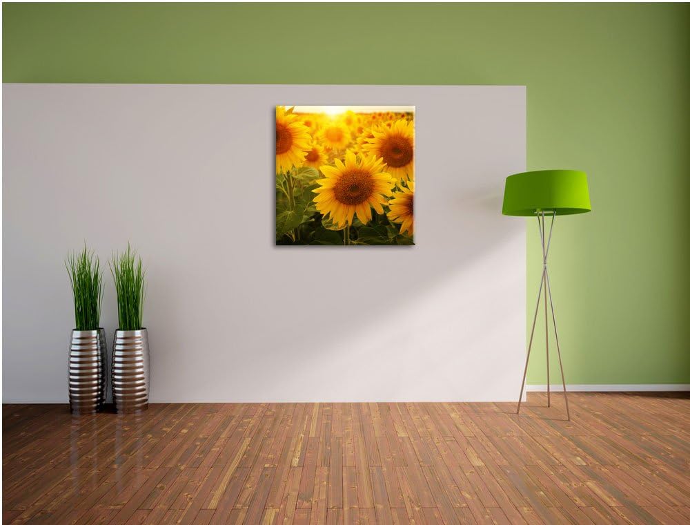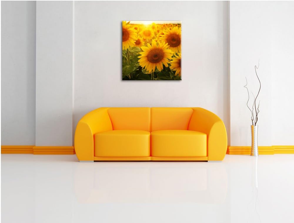 Sonnenblumen auf dem Feld, Format: 70x70 auf Leinwand, XXL riesige Bilder fertig gerahmt mit Keilrah