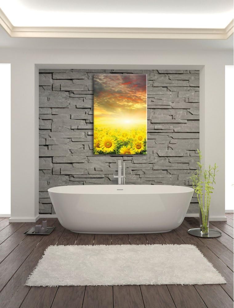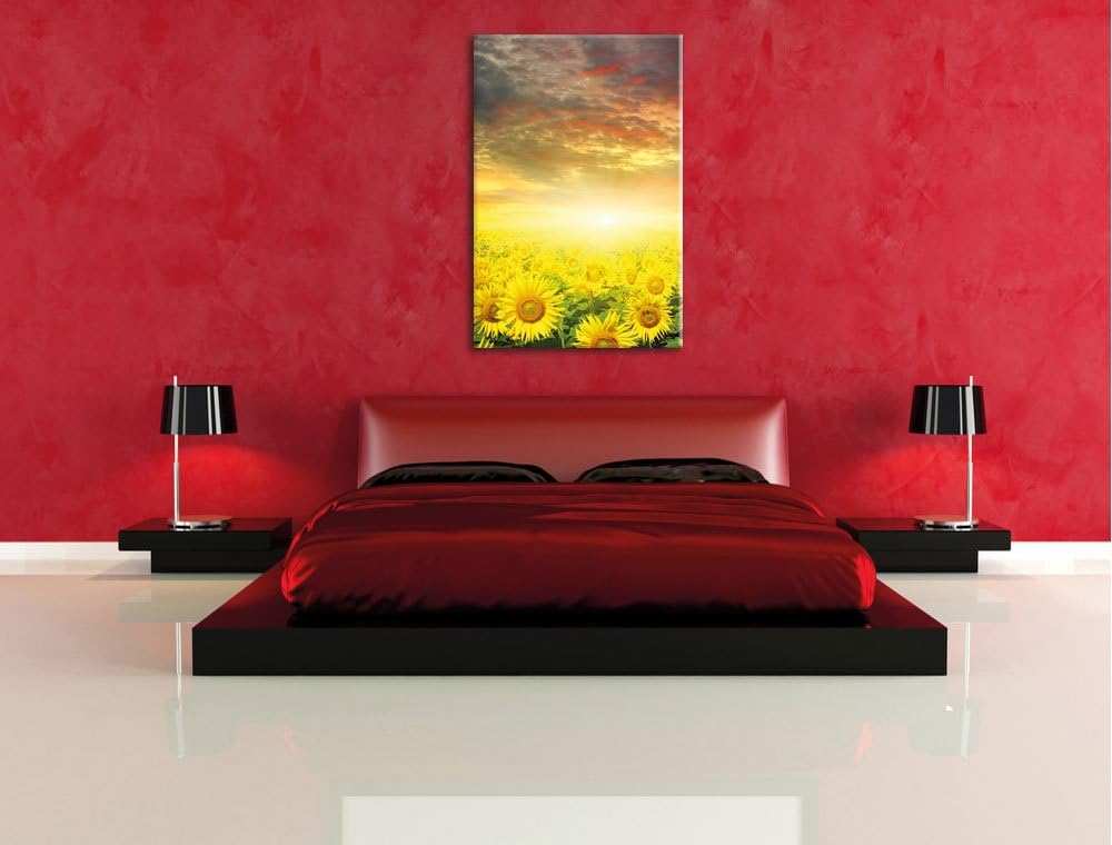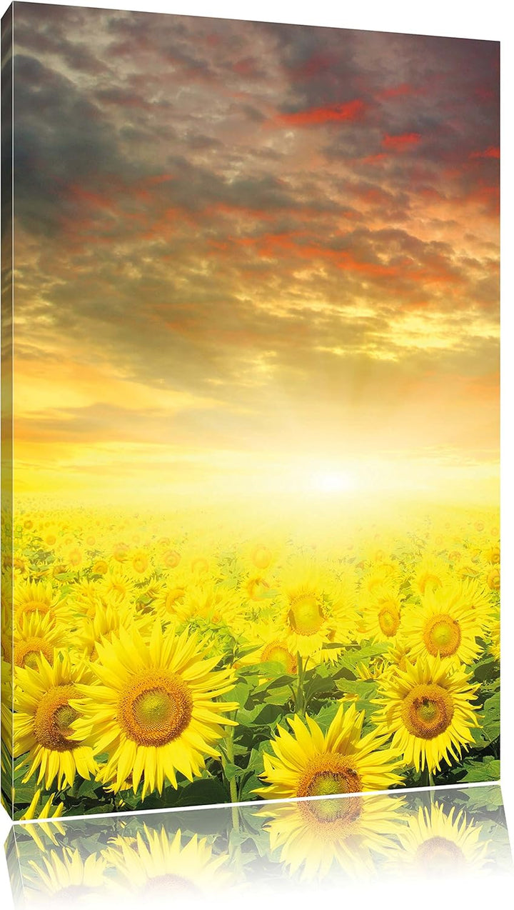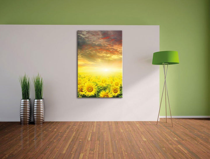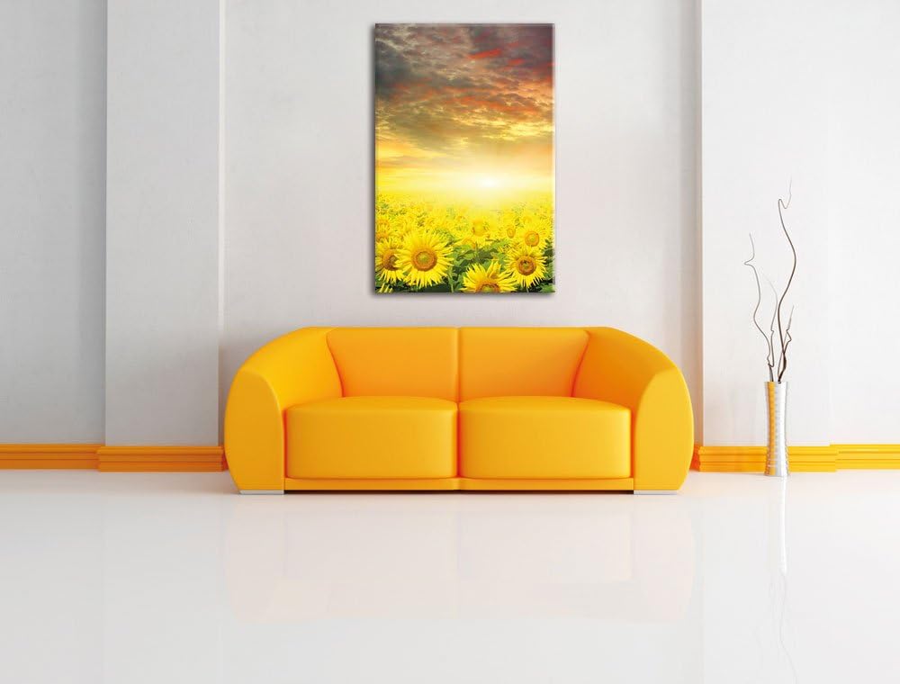 Sonnenblumenfeld, Format: 100x70 auf Leinwand, XXL riesige Bilder fertig gerahmt mit Keilrahmen, Kun