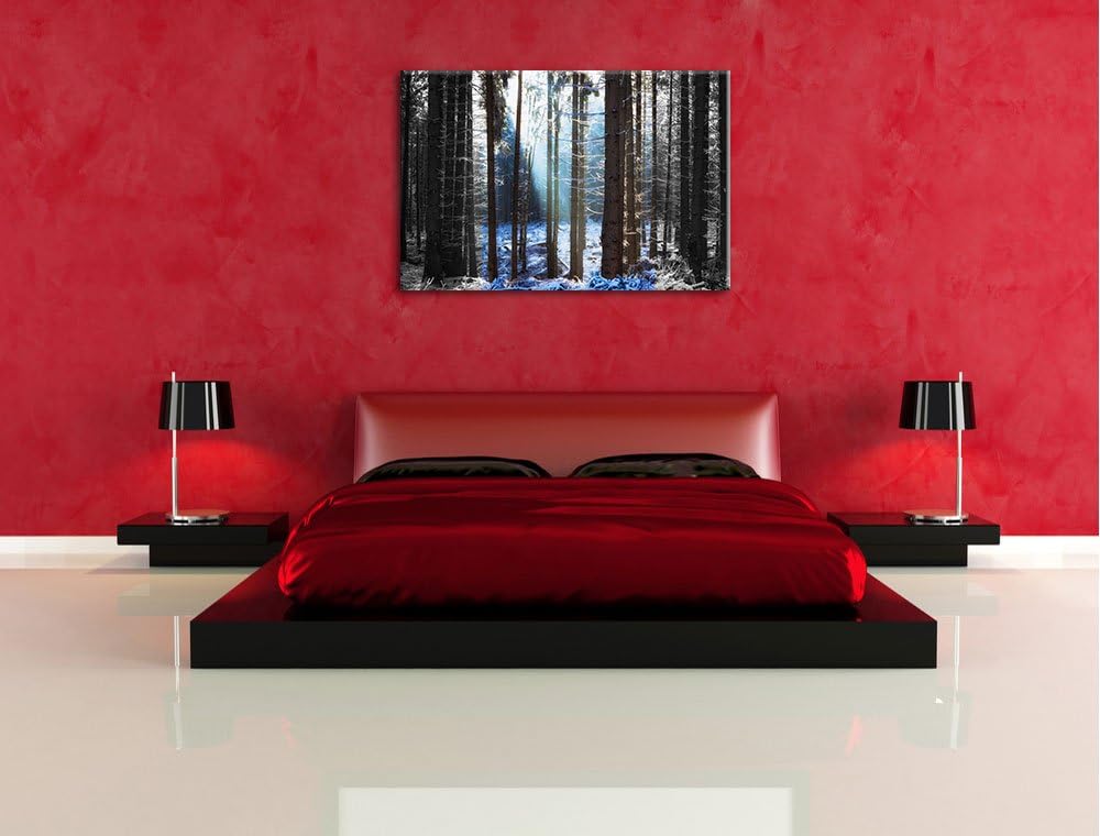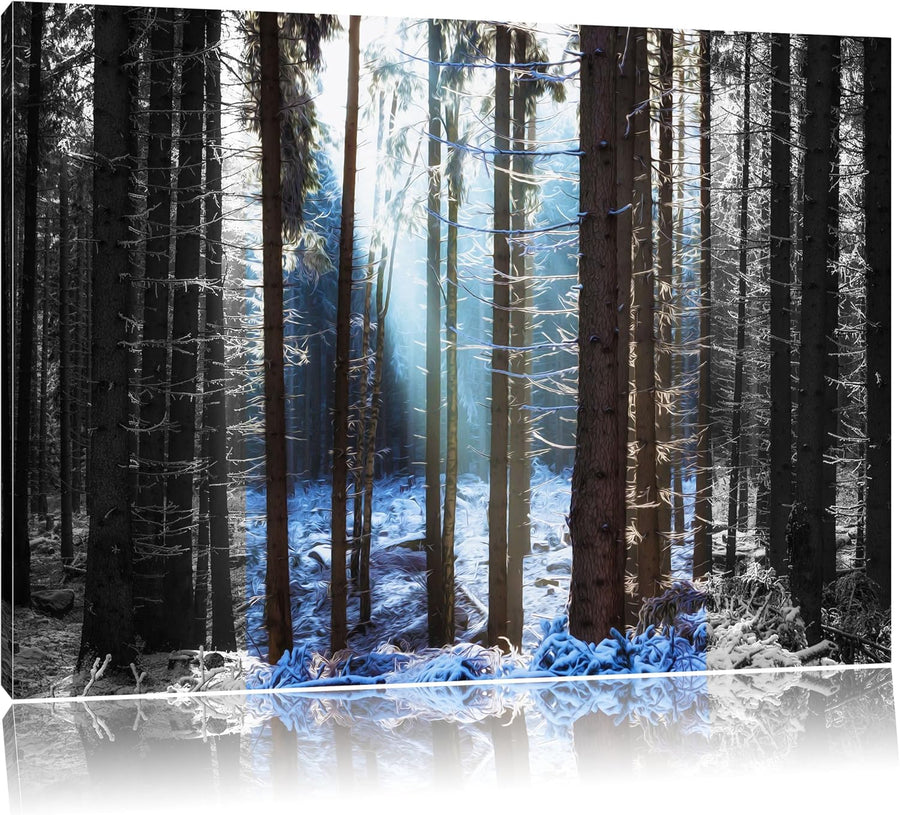 Sonnenschein im Winterwald schwarz/weiss Format: 100x70 auf Leinwand, XXL riesige Bilder fertig gera