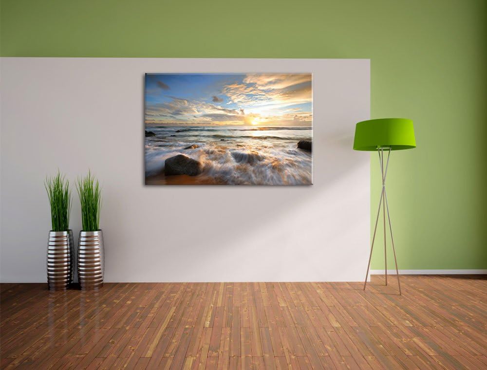 Sonnenuntergang am Meer, Format: 100x70 auf Leinwand, XXL riesige Bilder fertig gerahmt mit Keilrahm