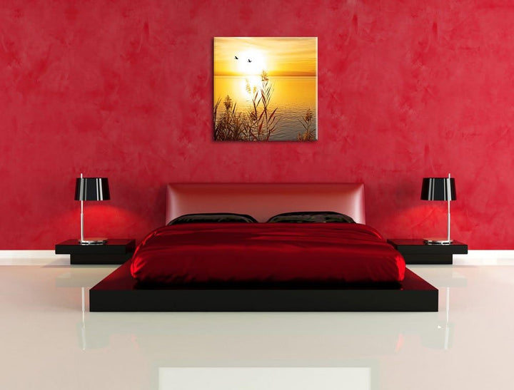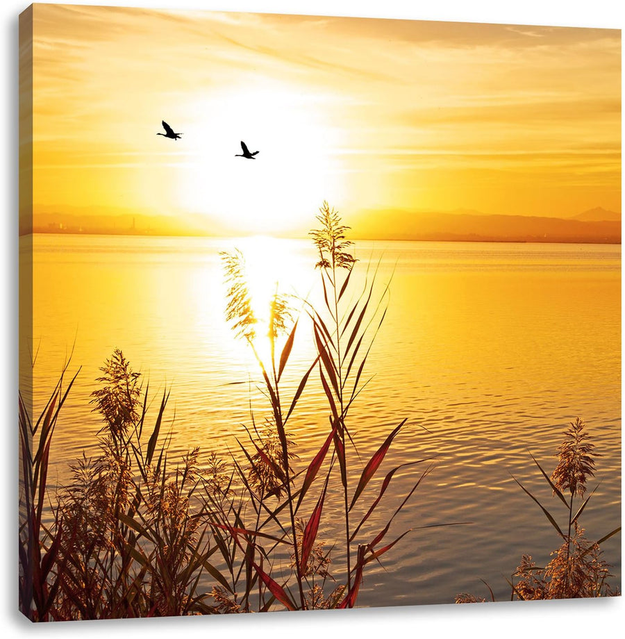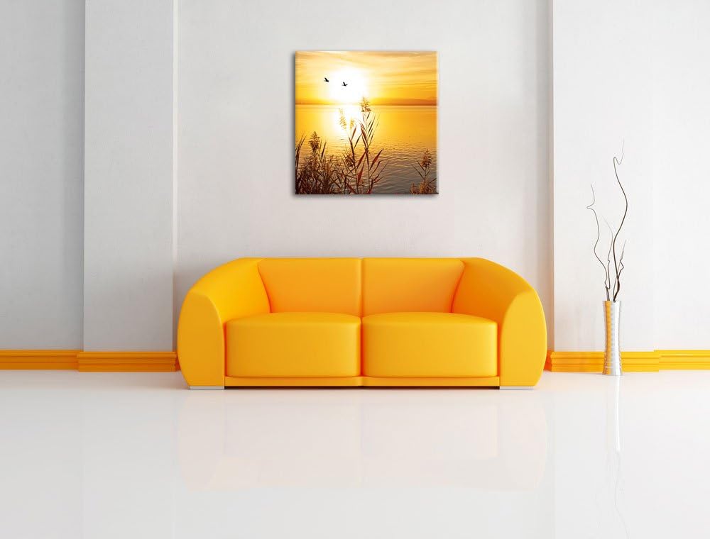 Sonnenuntergang am See, Format: 70x70 auf Leinwand, XXL riesige Bilder fertig gerahmt mit Keilrahmen