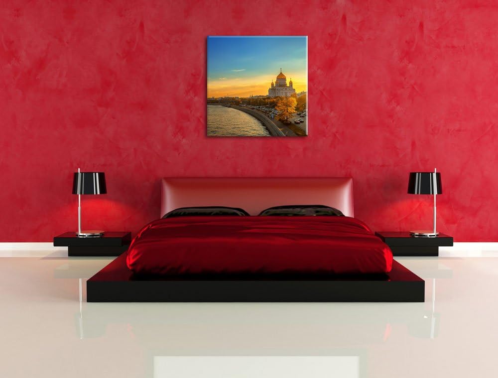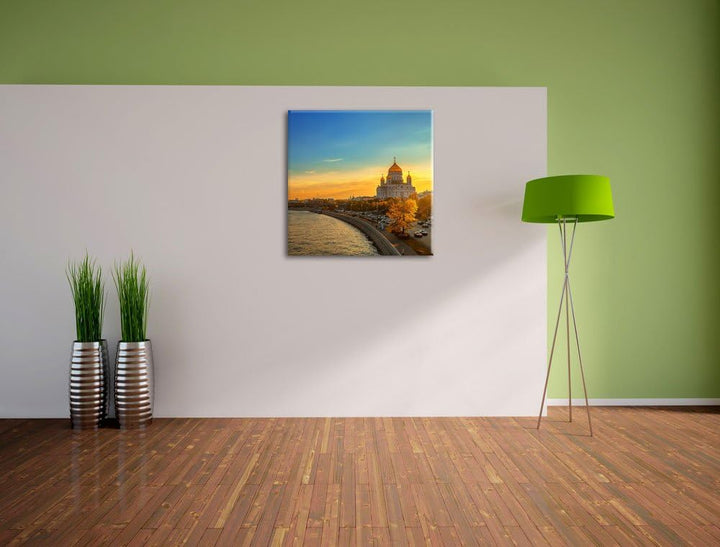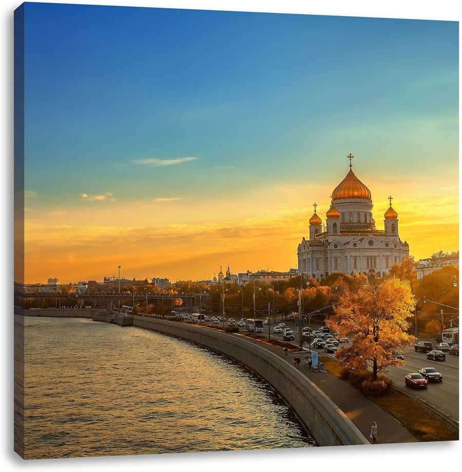 Sonnenuntergang in Moskau, Format: 70x70 auf Leinwand, XXL riesige Bilder fertig gerahmt mit Keilrah