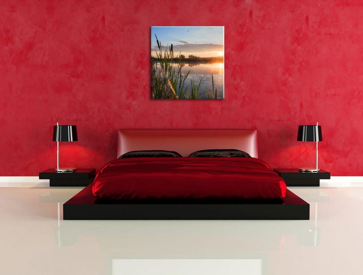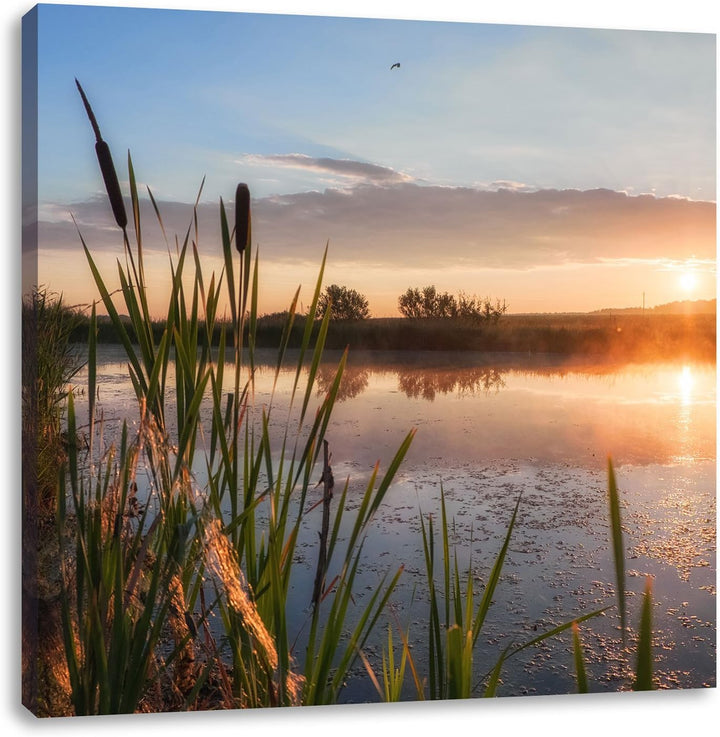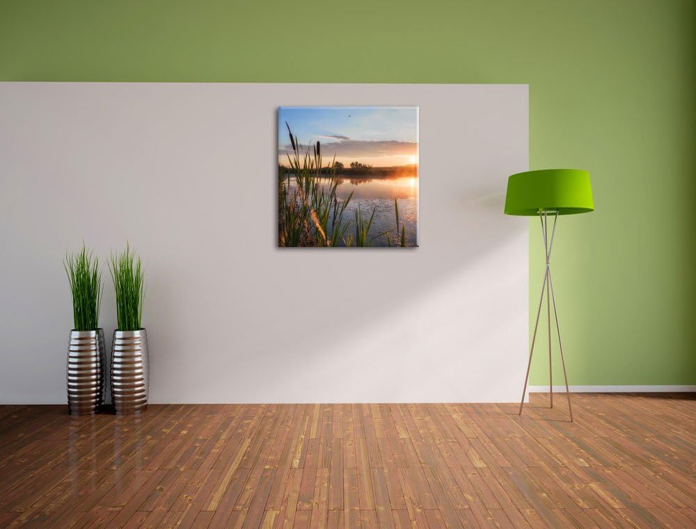 Sonniger Morgen am See, Format: 70x70 auf Leinwand, XXL riesige Bilder fertig gerahmt mit Keilrahmen