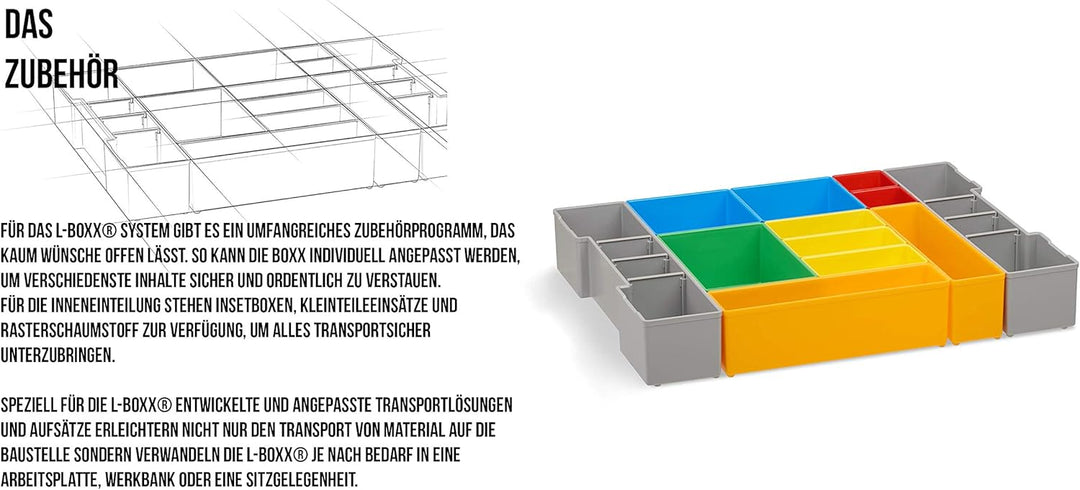 - ✅ IDEALES ORDNUNGSSYSTEM – Mit den Bosch Sortimo Insetboxen für die L-BOXX 102 haben Sie den optimalen Überblick über Ihre L-BOXX. Damit Sie immer genau wissen wo Ihre Schrauben & Dübel sind