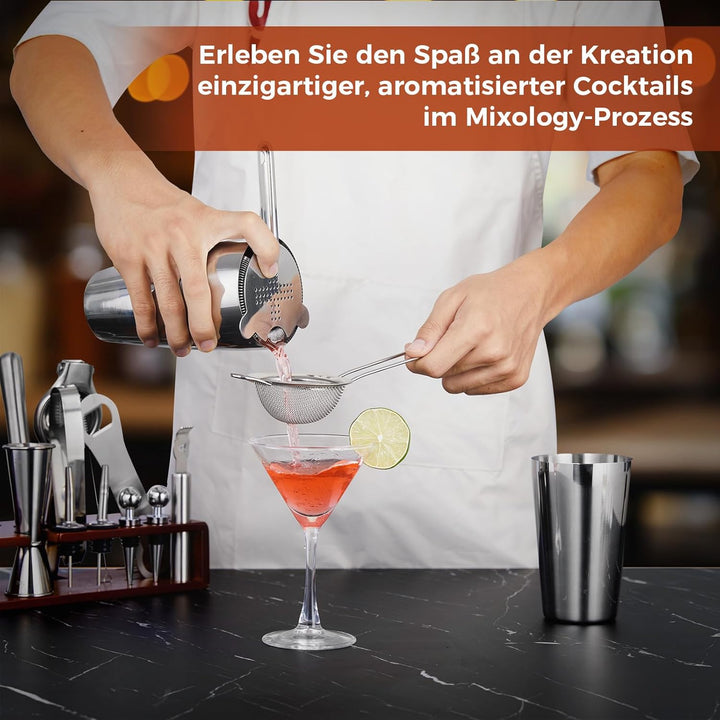 - Komplette Cocktail-Mix-Ausrüstung: Dieses cocktailset enthält eine Reihe von ausgezeichneten Cocktail-Mischgeräten, wie Boston Shaker, Presse, Sieb, Korkenzieher, cocktail messbecher, Sieb, stössel cocktail, Eiszange, Rührlöffel, Weinstopper,