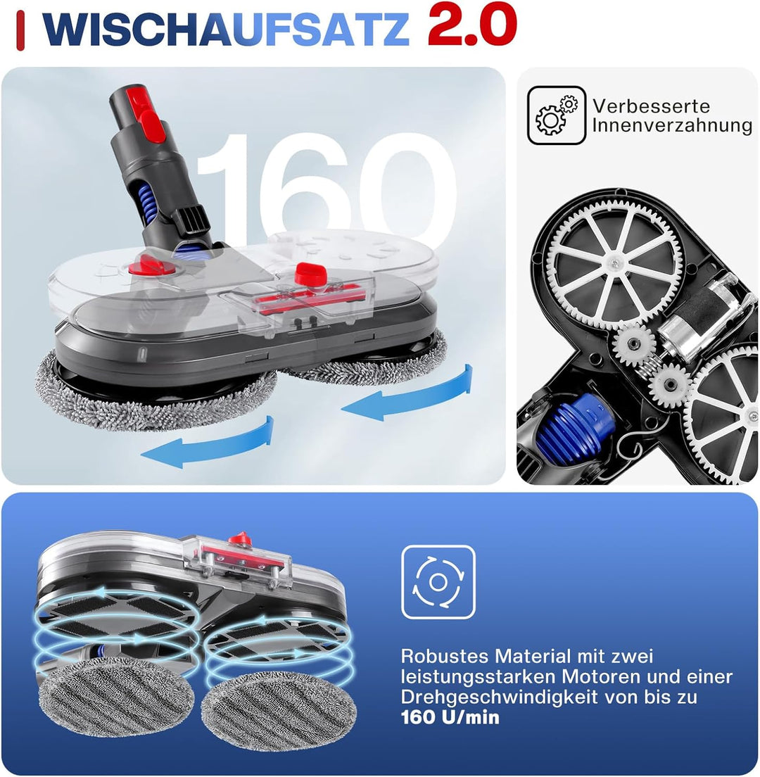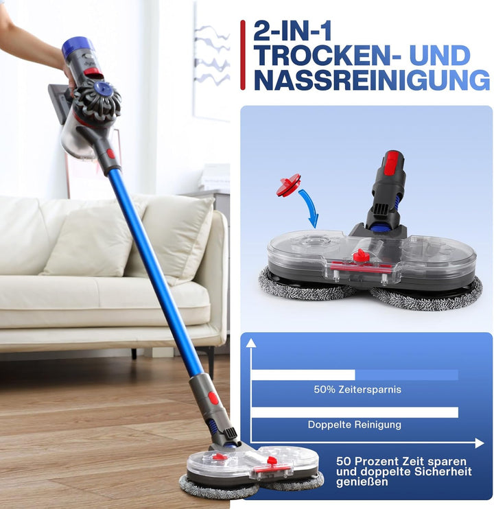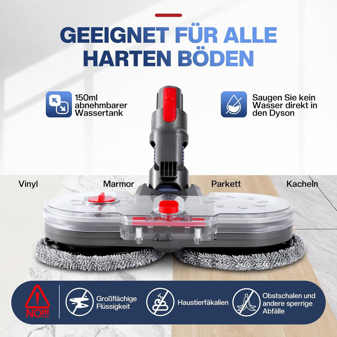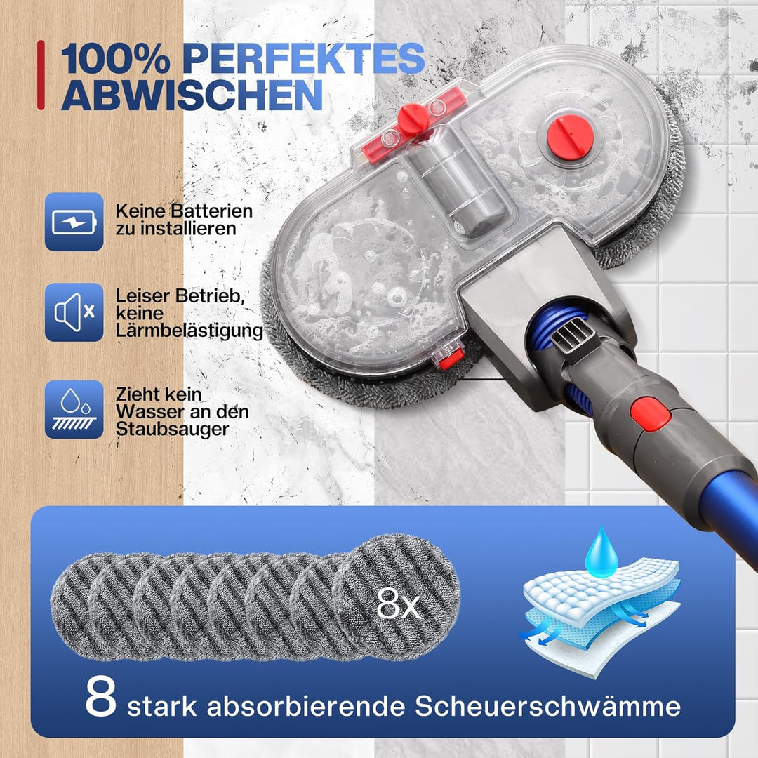 - Einfache Installation: Unser dyson wischaufsatz original passt perfekt zu Ihrem Dyson-Staubsauger und ist mit 8 waschbaren Mopps ausgestattet, die ausreichen, um Ihr gesamtes Zuhause gründlich zu reinigen. Das One-Klick-Systems macht die Installation