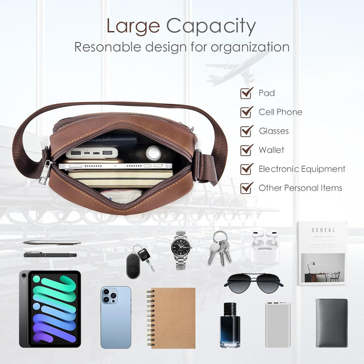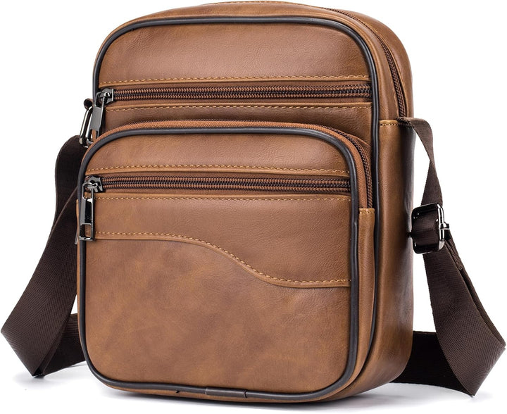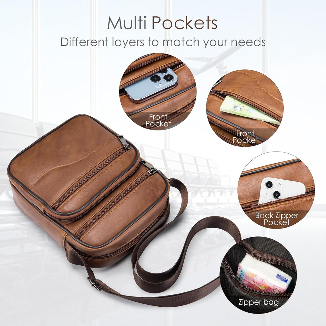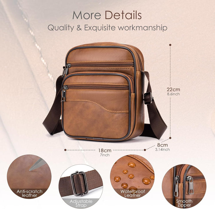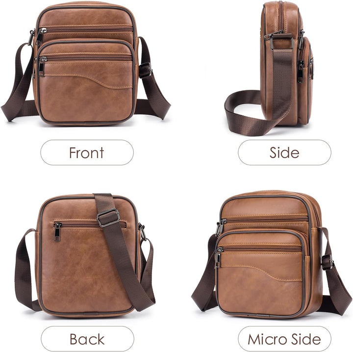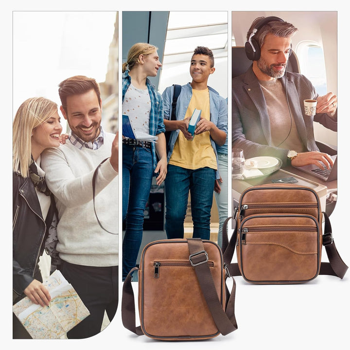 - Praktische Mehrfachtaschen Herrentasche: Es verfügt über insgesamt 5 Taschen und 1 Innentasche mit Reissverschluss, genug Platz für ein 9,7-Zoll-iPad, ein Mobiltelefon, eine Brieftasche, einen Reisepass, eine Kreditkarte, Wasserflaschen, Bargeld,