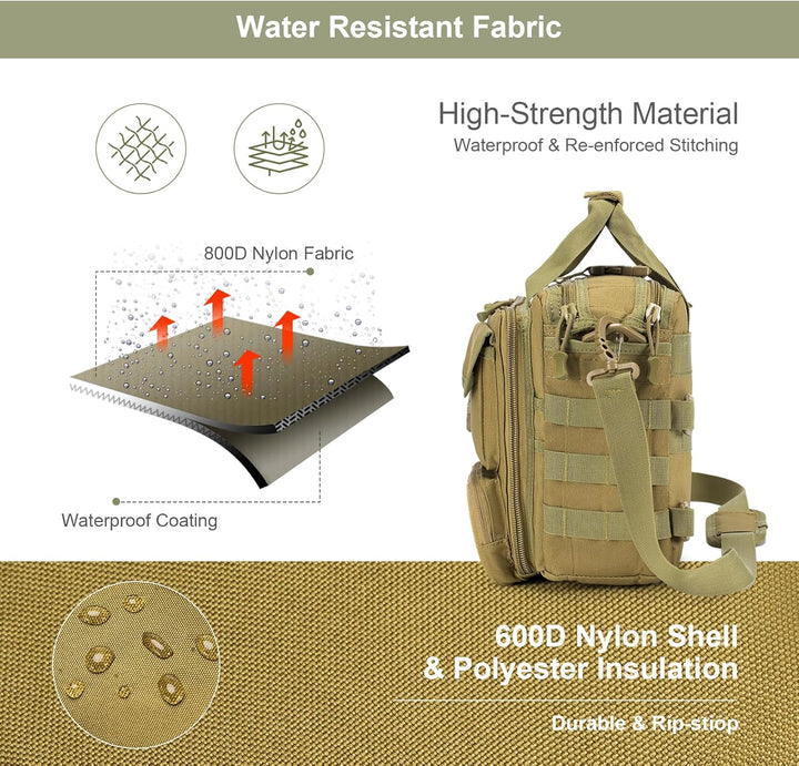 • MOLLE-System: Machen Sie es selbst. Sie können Ihren Lieblingsaufkleber an die kleine Vordertasche dieser taktischen Tasche hängen, oder Sie können auch Ihre Schlüssel, Ihren Wasserbeutel und Ihr Walkie-Talkie an beiden Seiten oder oben aufhängen.