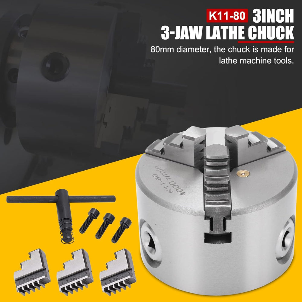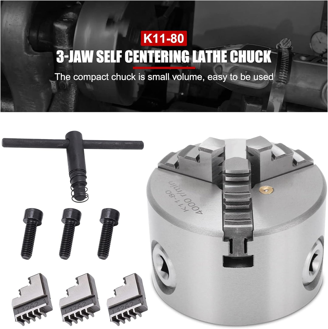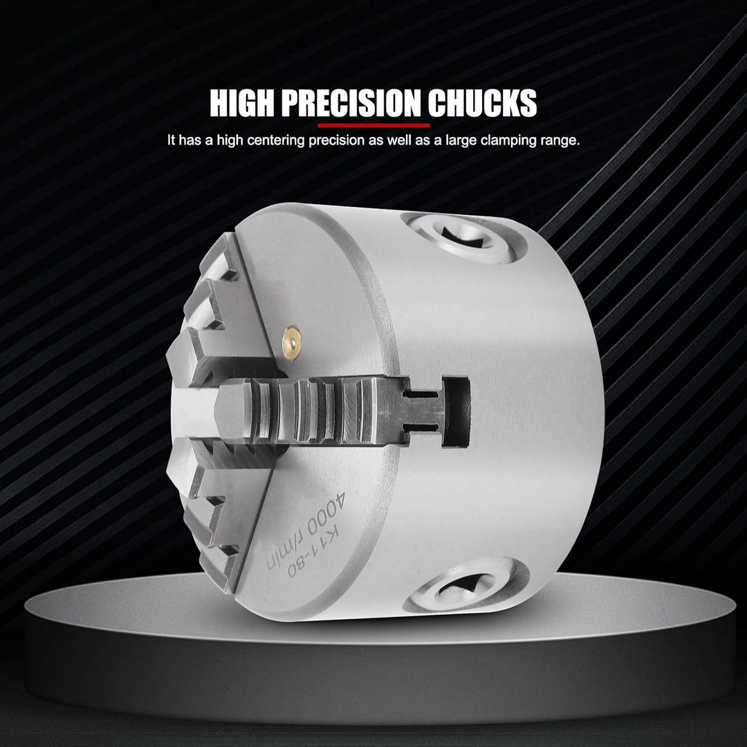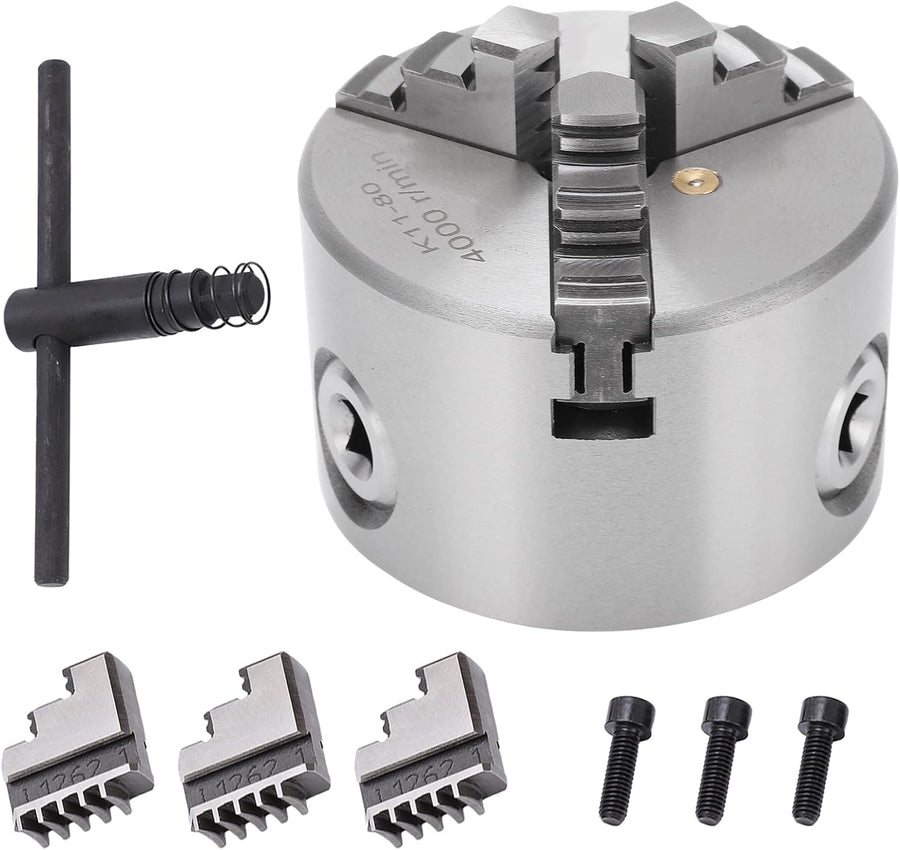 - [Ideales Werkzeug für Holzbearbeitungsdrehmaschinen] Das Drei-Backen-Design des Drei-Backen-Spannfutters k11-80 kann automatisch zentriert werden. Es ist weit verbreitet als ideales Werkzeug für Holzdrehmaschinen und Holzbearbeitungsdrehmaschinen.
