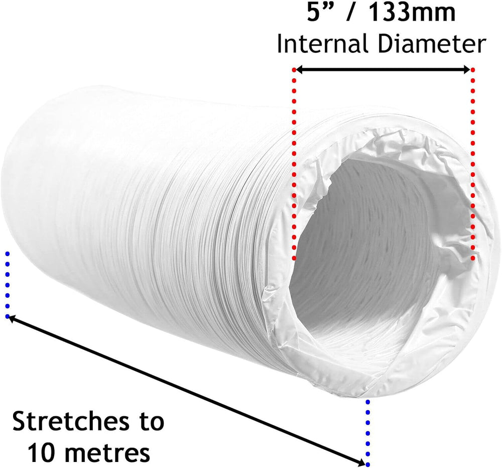 SPARES2GO Klimaanlage Kanalschlauch PVC extra lang flexibel Entlüftungsrohr Universal (12,7 cm x 10