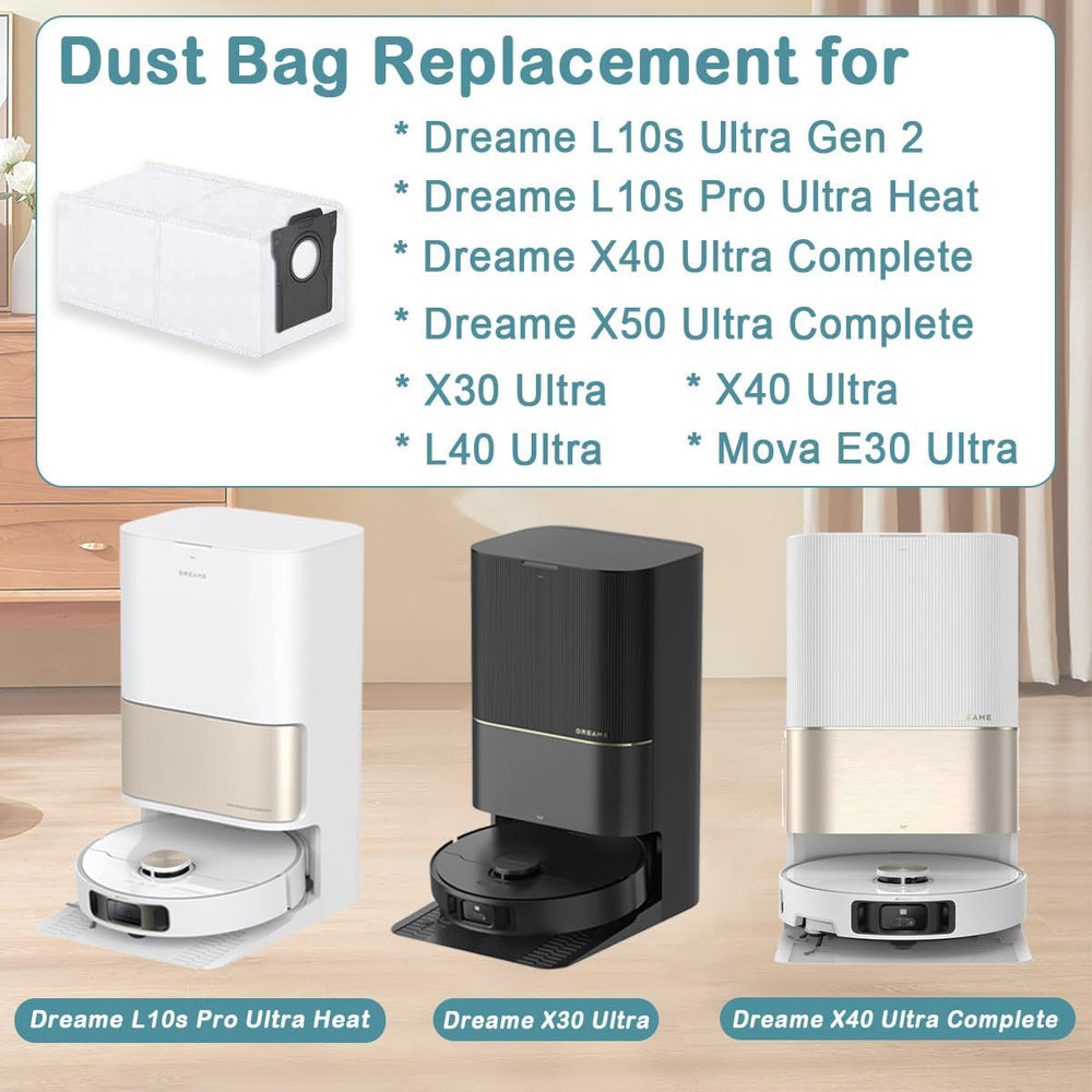 - Kompatible Modelle - Der Ersatz Staubbeutel ist mit Dreame L10S Pro Ultra Heat, X30 Ultra und X40 Ultra Complete kompatibel Roboter Staubsauger.