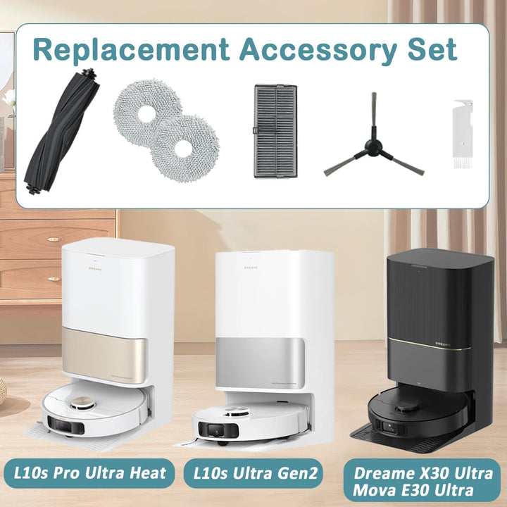 - Kompatibler Modell - Dieser Zubehör Kit ist mit Dreame L10s Pro Ultra Heat/ L10s Ultra Gen 2 Roboter Staubsauger und X30 Ultra kompatibel. HINWEIS: Dieses Set ist nur für Dreame L10s Pro Ultra Heat -Serie gedacht. Überprüfen Sie bitte Ihr Modell