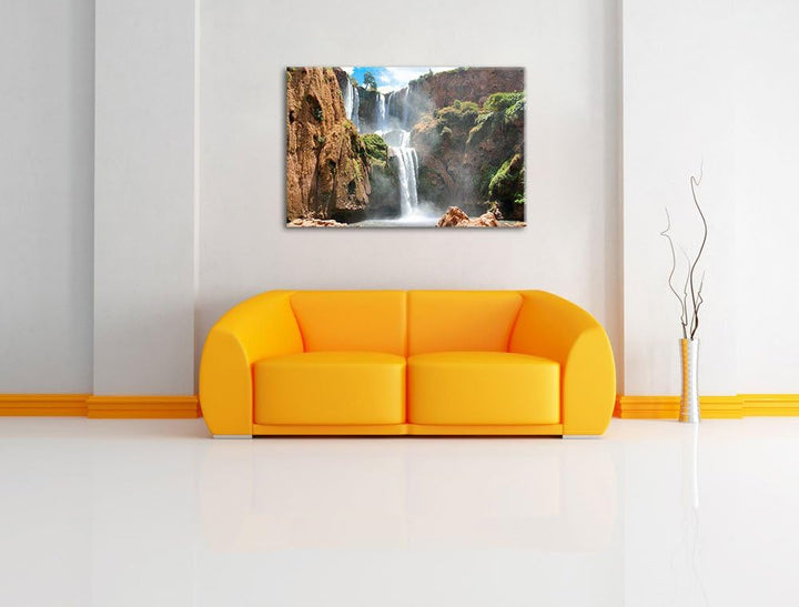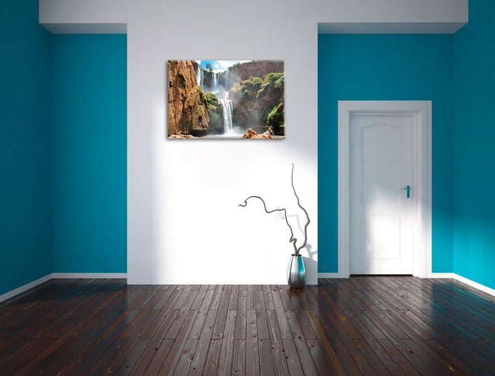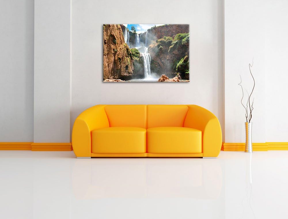Spektakulärer Wasserfall Format: 100x70 auf Leinwand, XXL riesige Bilder fertig gerahmt mit Keilrahm