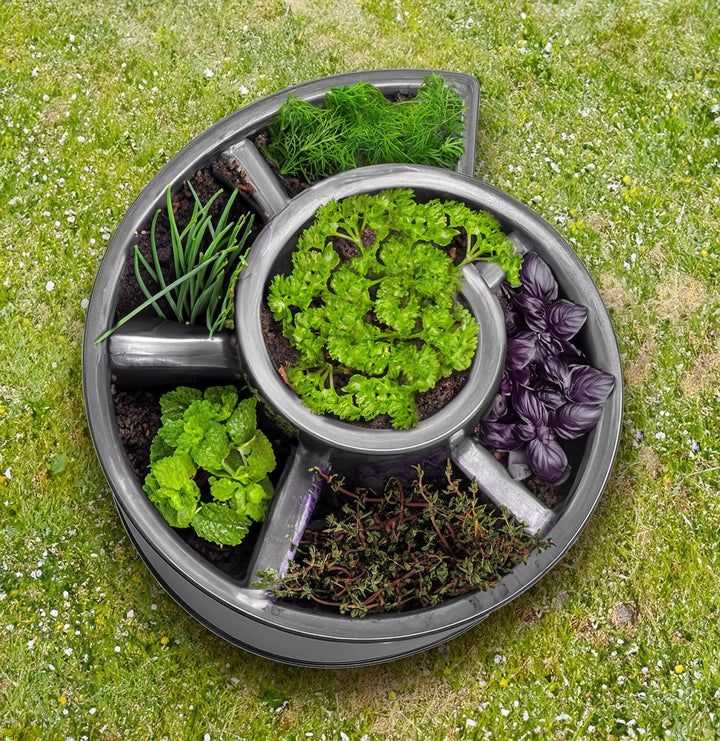 - moderner, runder Pflanzkasten mit 6 Kammern - jede Kammer durch die Spiralen-Form auf verschiedenen Ebenen