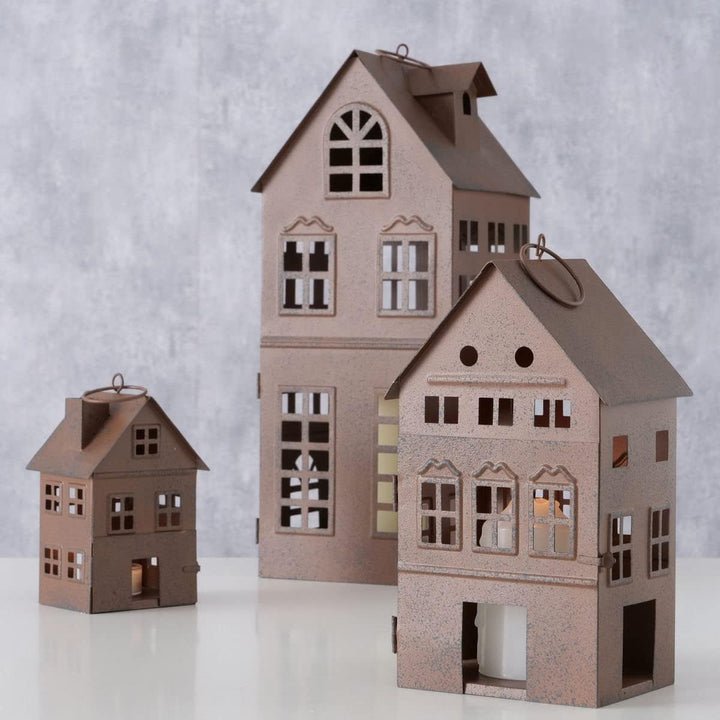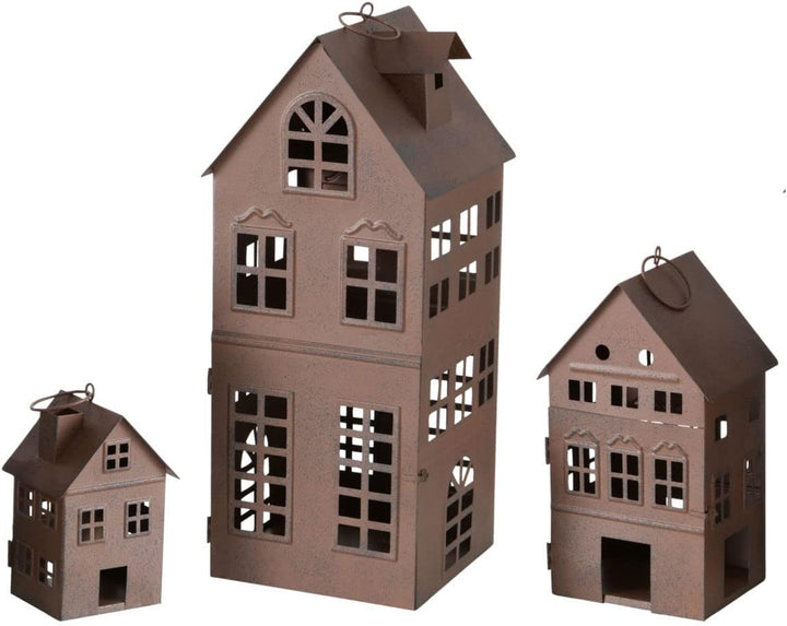 - Metall Laterne im 3er Set im antiken Design in edler Rost-Optik - mit Ringöse oben zum Aufhängen - auch zum Hinstellen geeignet