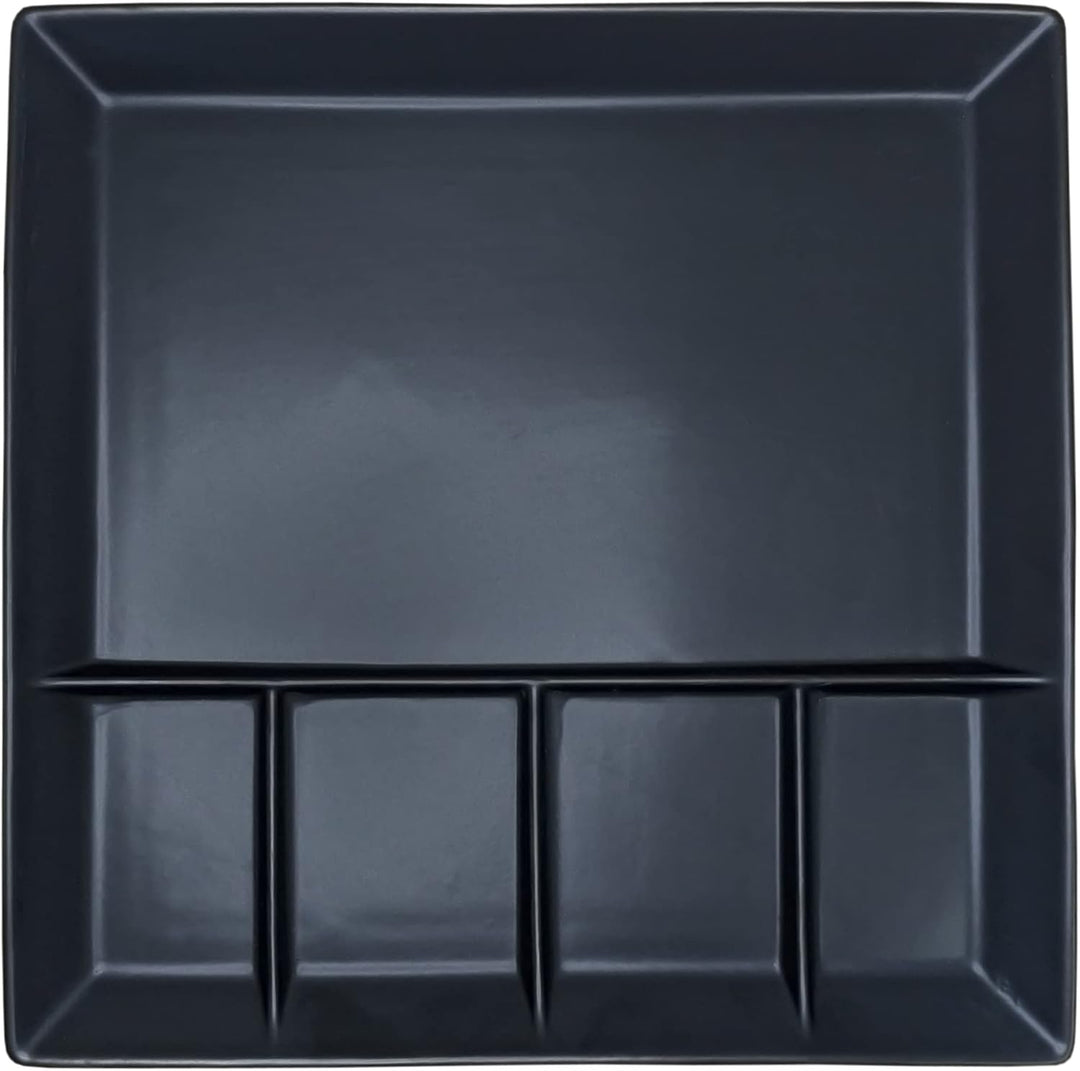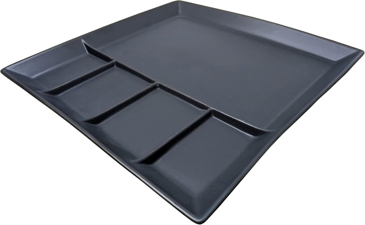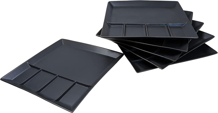- mit 5 Kammern zum getrennten Anrichten von Fleisch, Fisch, Gemüse, Saucen, Dips etc.
