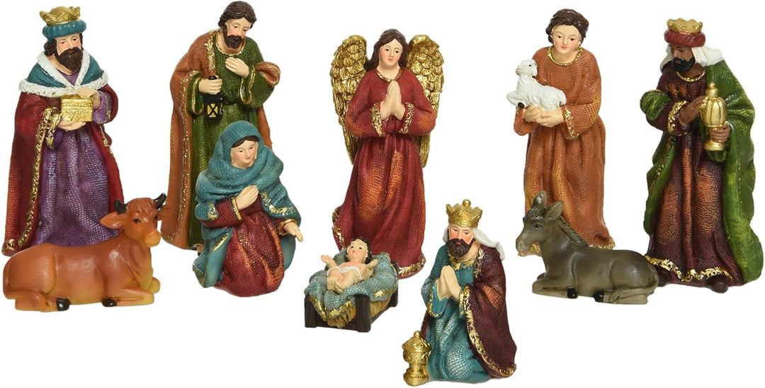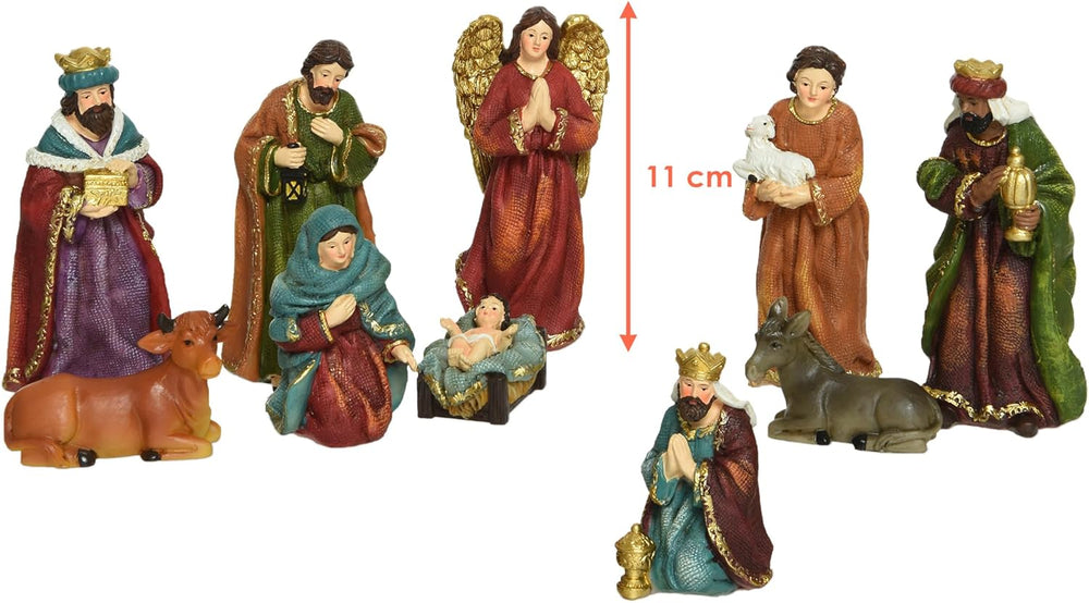 Spetebo Weihnachts Krippenfiguren handebemalt - 10 Stück / 11 cm - Krippen Stall Tisch Dekoration -