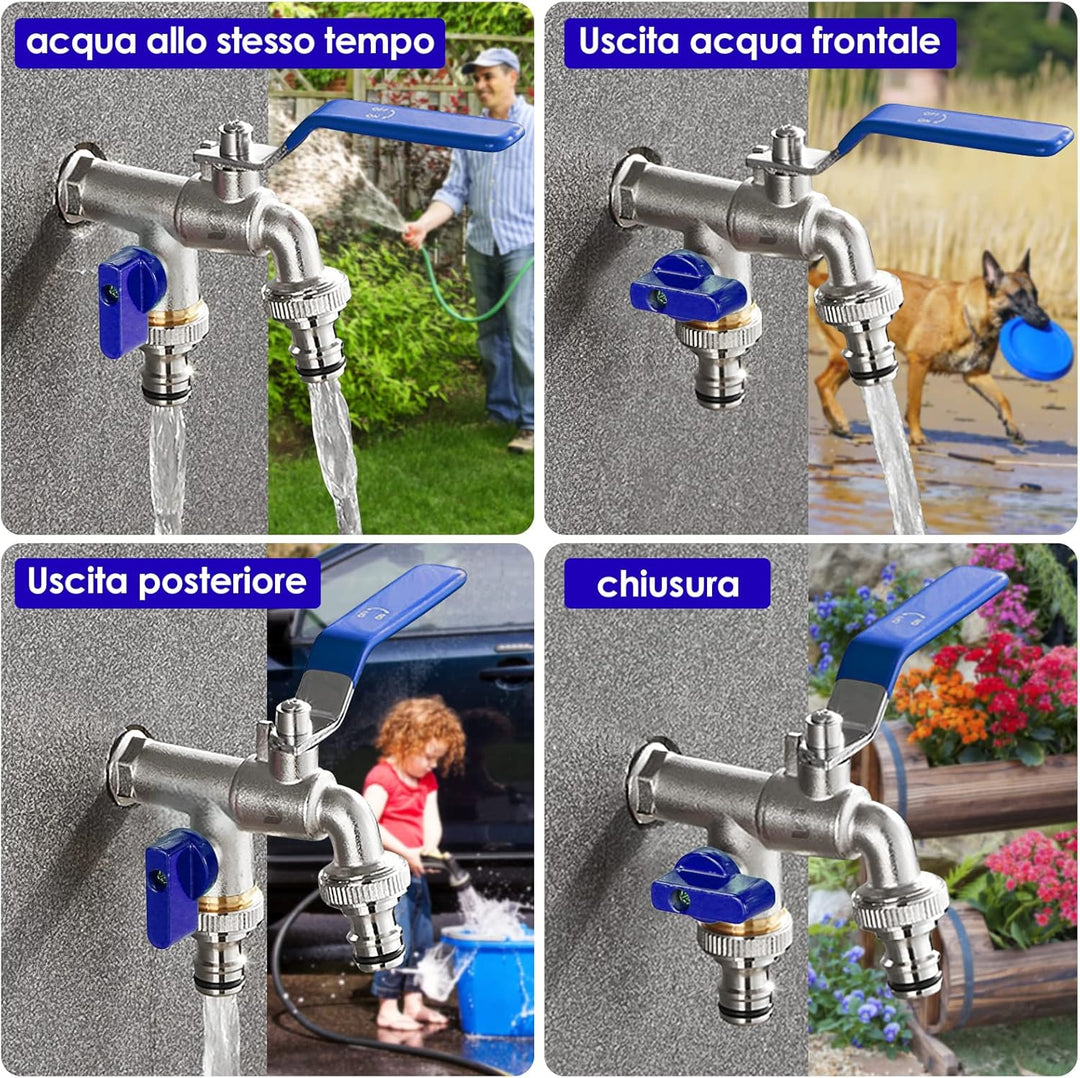 • Standardgrösse:Wasserhahn für den Aussenbereich Standard 1x 3/4 Einlass und 2x -3/4 Auslass können zwei Schlauchverteiler gleichzeitig anschliessen