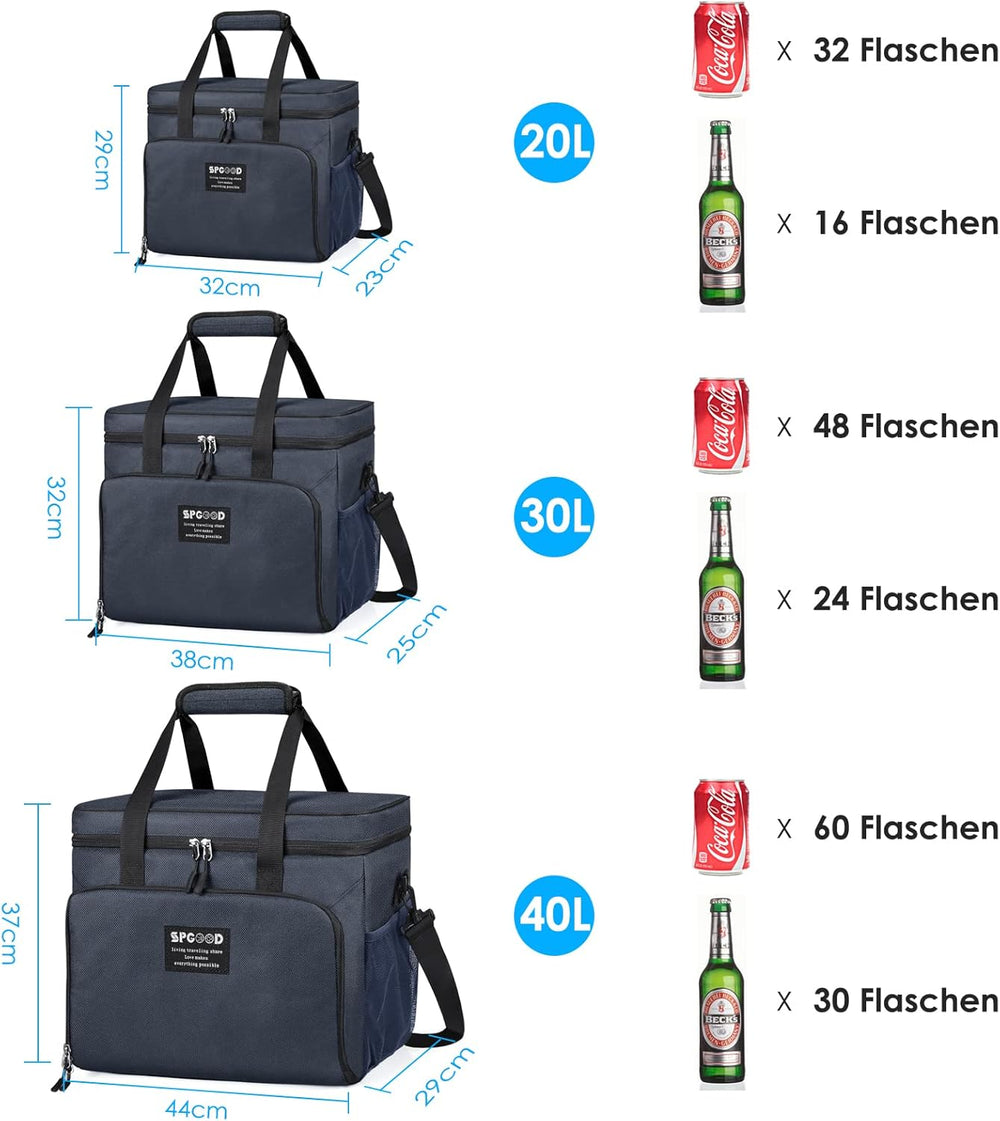 - 【Abmessungen & Kapazität】Die Gesamtabmessungen der Kühltasche sind 20 liter.Die Gesamtmasse betragen 32 x 22.5 x 29 cm.Es bietet Platz für bis zu 36 Dosen (330 ml) Getränken.