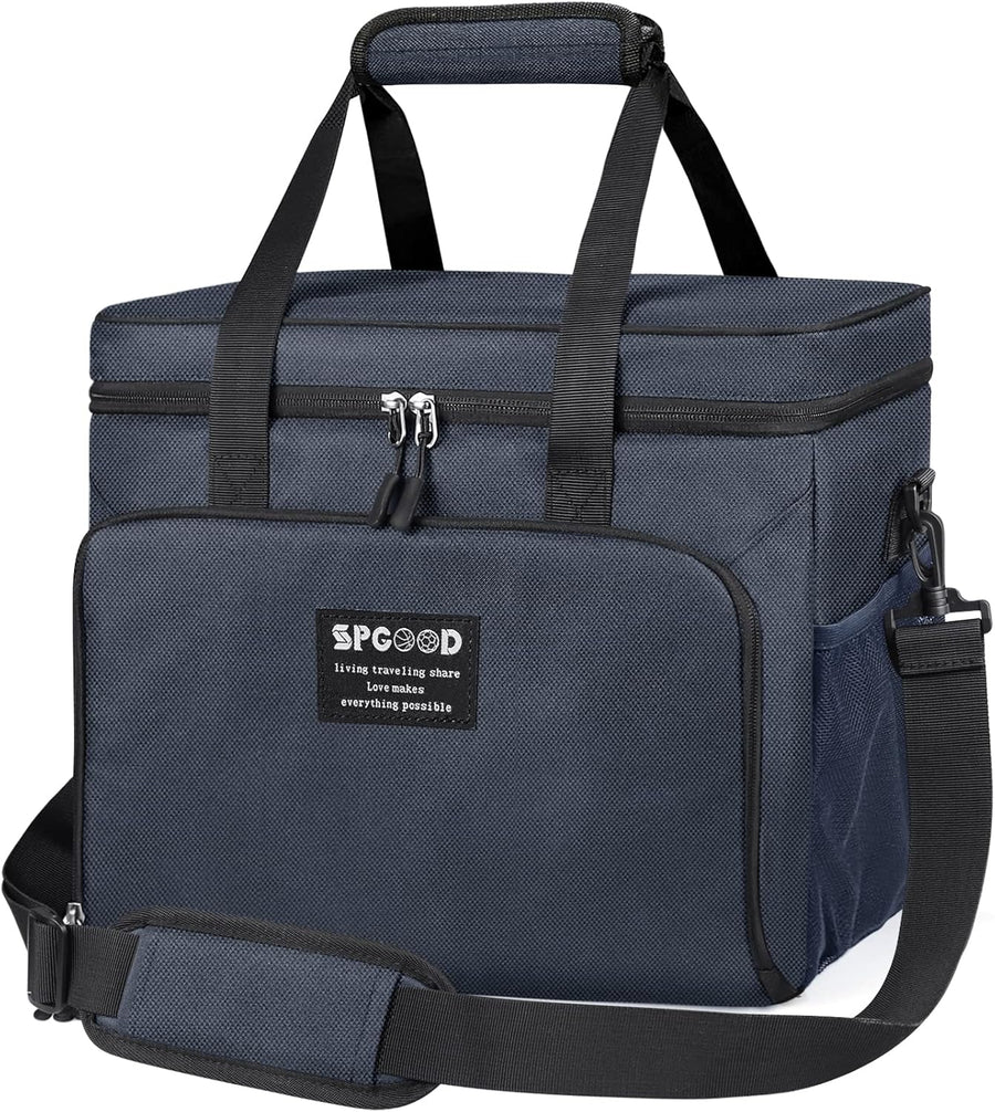 - 【Mehrere Taschen】Die Warmhaltetasche verfügt über eine breite Öffnung zum einfachen Be- und Entladen.Es gibt 2 seitliche Mesh-Taschen für die Lagerung von Getränken und eine tiefe Fronttasche lässt auch Utensilien wie Messer und Servietten praktisch verstauen.Das kleinere Aussenfach auf der Rückseite bietet zusätzlichen Stauraum für Handy/Tischdecken/Servietten/Teebeutel.