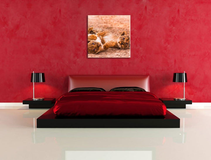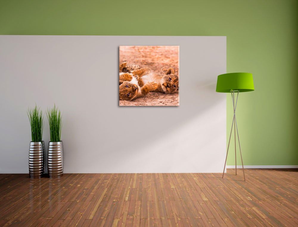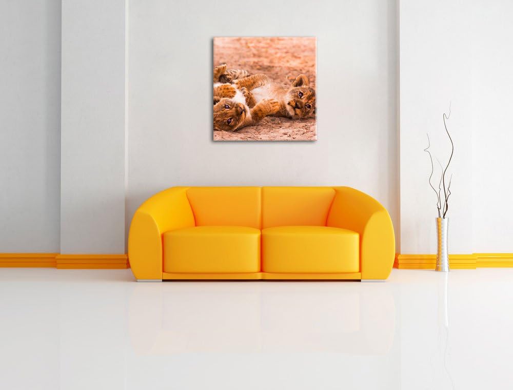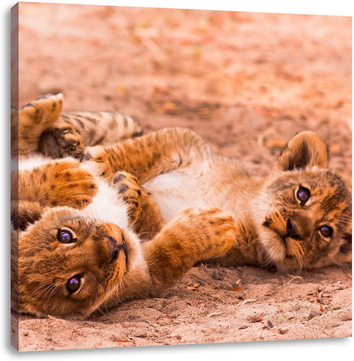 Spielende Löwenjungen, Format: 70x70 auf Leinwand, XXL riesige Bilder fertig gerahmt mit Keilrahmen,