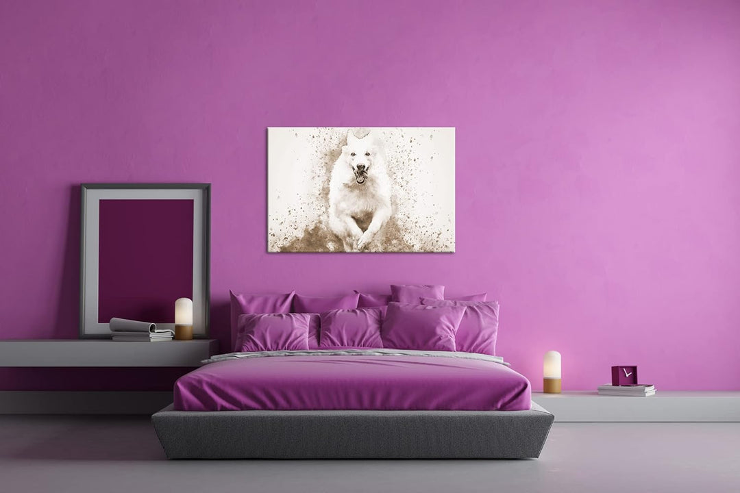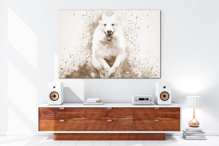 deyoli spielender Hund Format: 80x60 Effekt: Sepia als Leinwandbild, Motiv fertig gerahmt auf Echtho