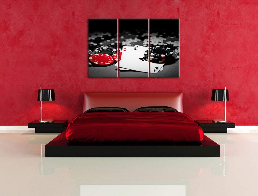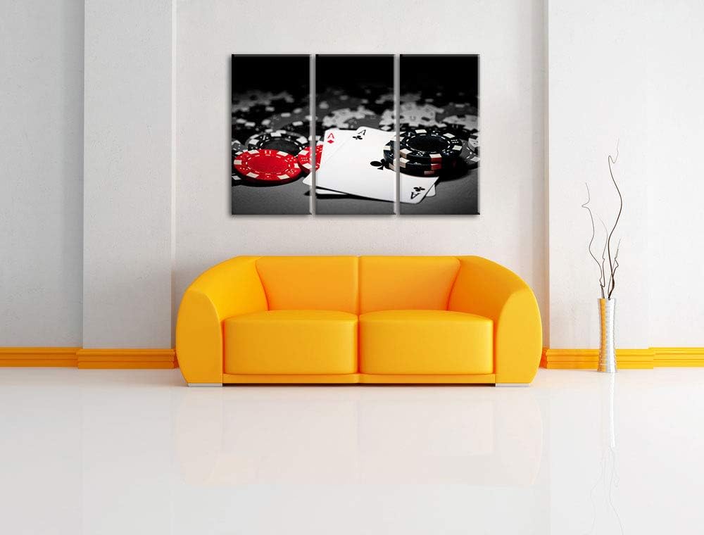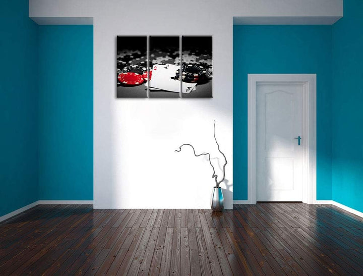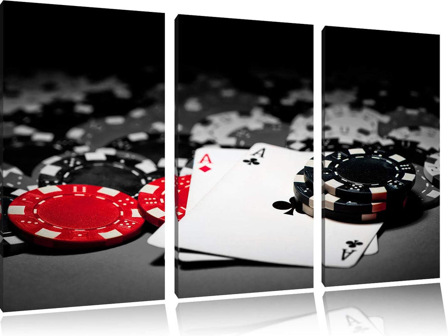 Spielkarten auf Pokertisch schwarz/weiss 3-Teiler Leinwandbild 120x80 Bild auf Leinwand, XXL riesige