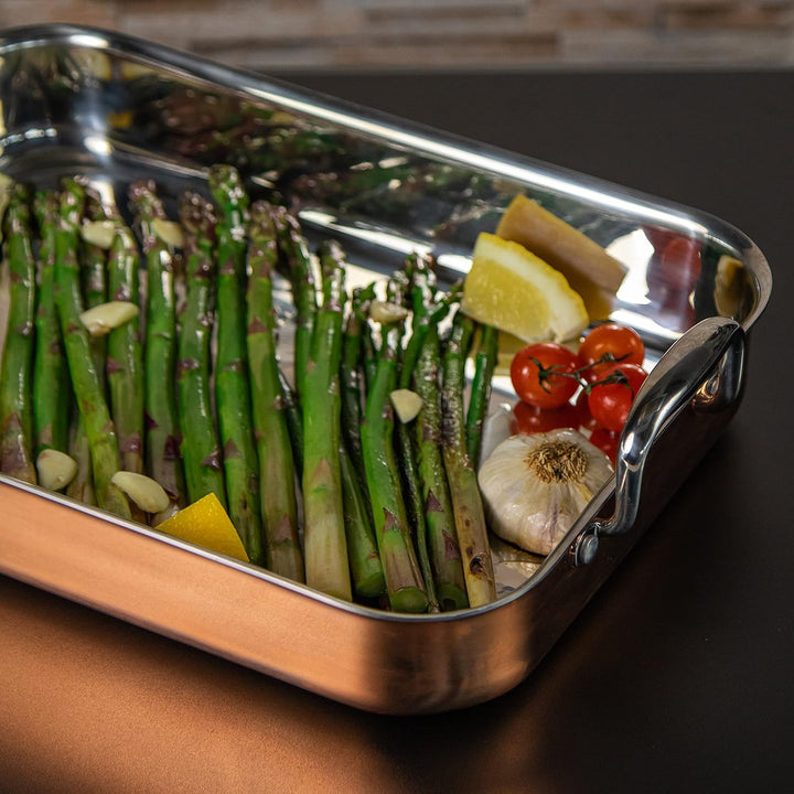 - FÜR ALLE HERDARTEN: Die Kupfer Pfanne ist dank der hochwertigen 0,5 mm Kupfer-Aussenschicht für alle Herdarten und den Backofen geeignet und sorgt für ein gleichmässiges und energiesparendes Kochen. Nicht für Induktion.