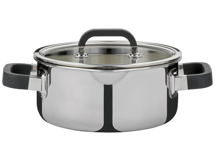 Spring Fusion 2+ Bratentopf niedrig, 24 cm, 5-Lagen-Mehrschichtmaterial, Griffe mit Silikonummantelu