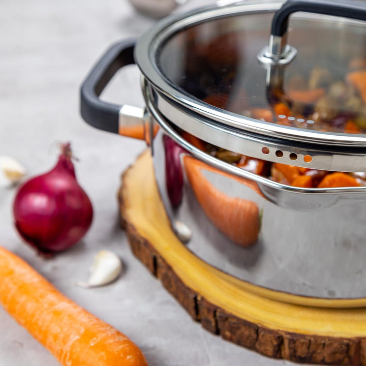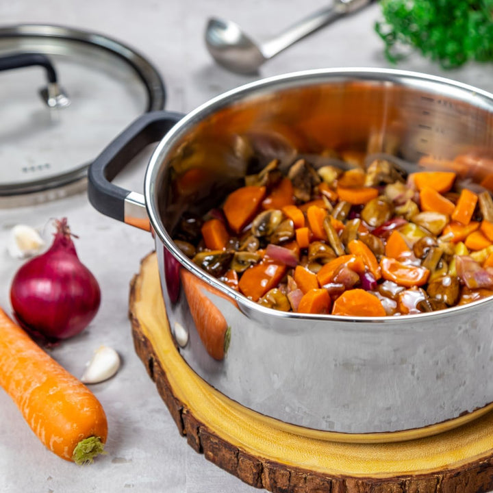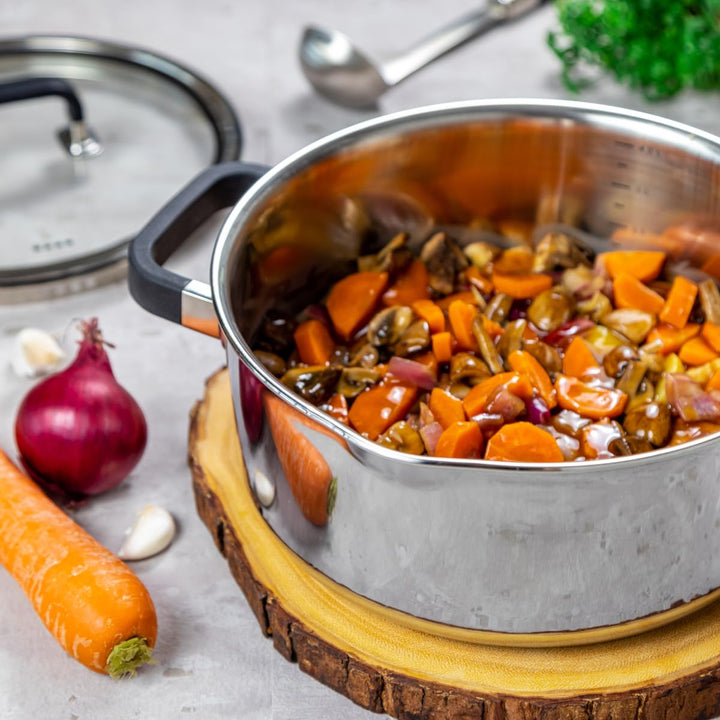 • TOPF IN GASTRONOMIEQUALITÄT – Der Topf aus Edelstahl mit Aluminiumkern bietet Hervorragende Wärmeleitfähigkeit und wird daher in Profiküchen in der ganzen Welt geschätzt