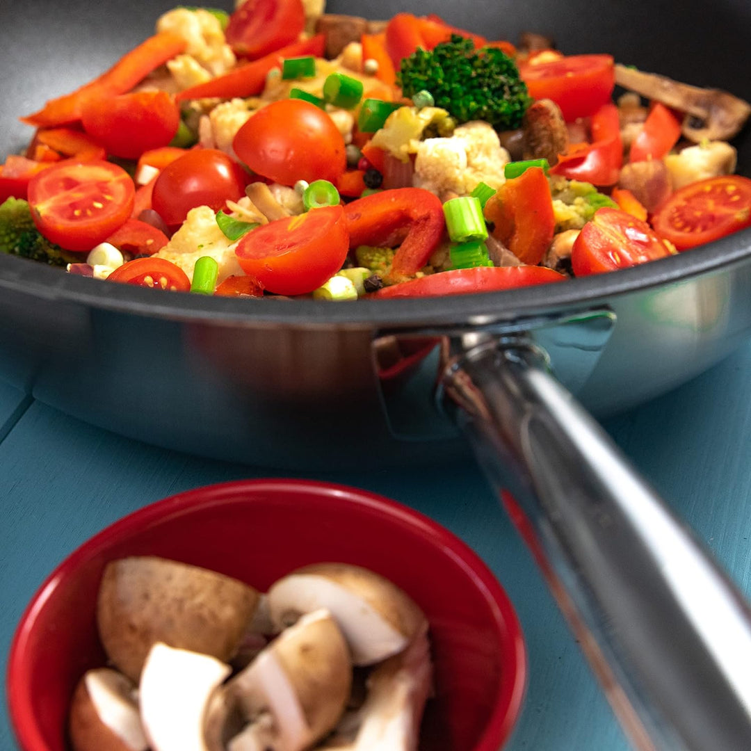 - Die Profi-Pfannen leiten die Wärme optimal und verteilen sie gleichmässig bis zum Rand