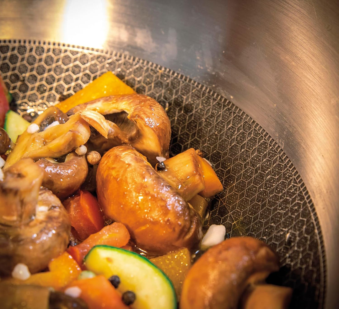 - KRATZFEST: Die Edelstahlpfanne von Spring verfügt über eine Wabenbeschichtung, die jedem Pfannenwender strotzt. Selbst Metall hinterlässt in dieser Pfanne keinen Kratzer.