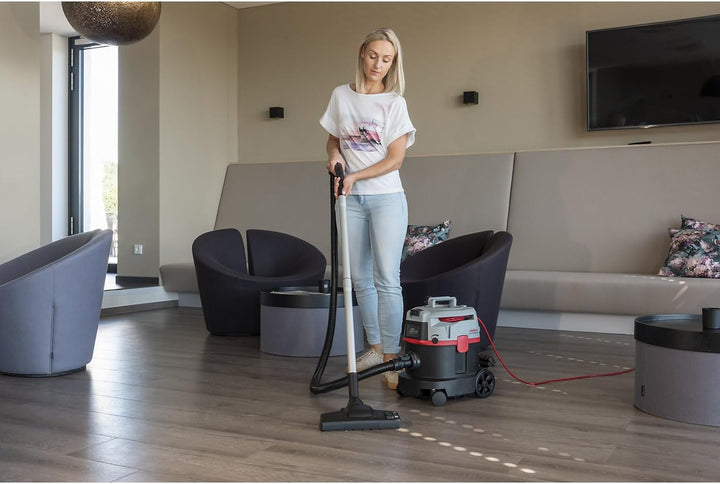- Grundausstattung: 2 x 0, 5 m Aluminium-Saugrohre. 2, 0 m Saugschlauch komplett. Vliesfilterkorb. HEPA13 Vliesfiltertüte. HEPA13 Filterkassette. Fugendüse, kombinierte Polster-/Möbeldüse, Kombidüse 280 mm. Netzkabel 10, 0 m, steckbar, signalrot