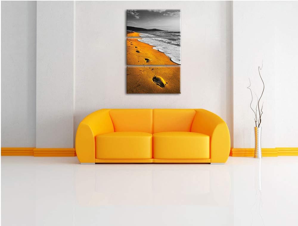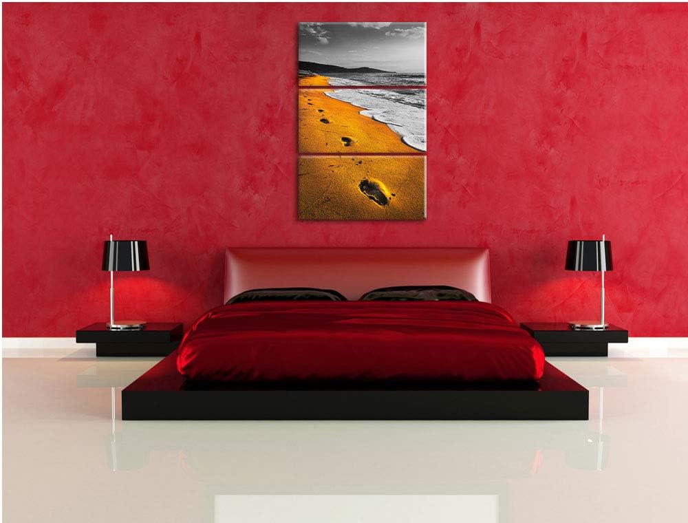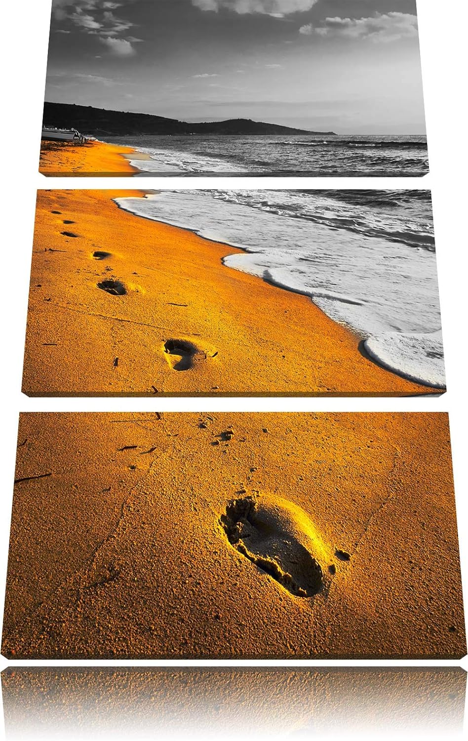 Spuren Im Sand am weiten Meer schwarz/weiss 3-Teiler Leinwandbild 120x80 Bild auf Leinwand, XXL ries