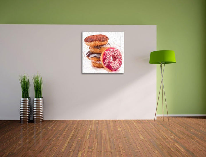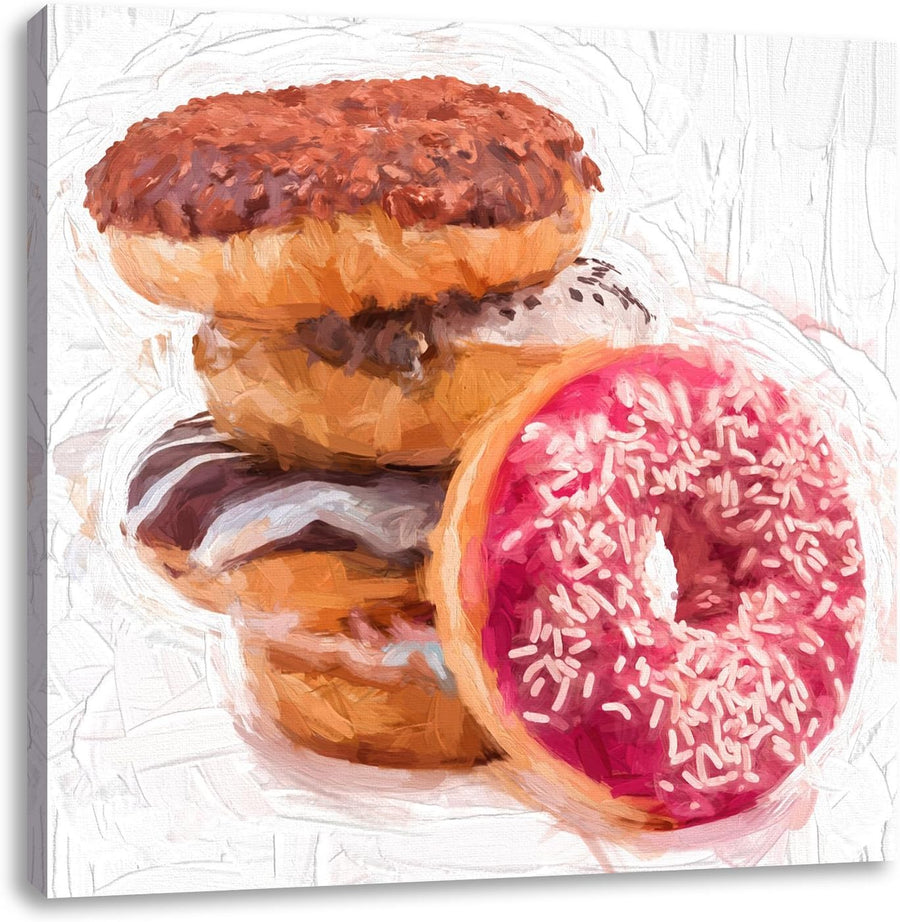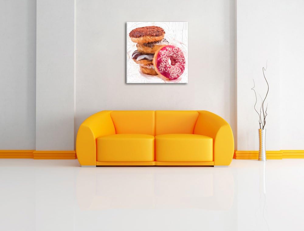 Süsse Donuts Pinsel Effekt, Format: 70x70 auf Leinwand, XXL riesige Bilder fertig gerahmt mit Keilra