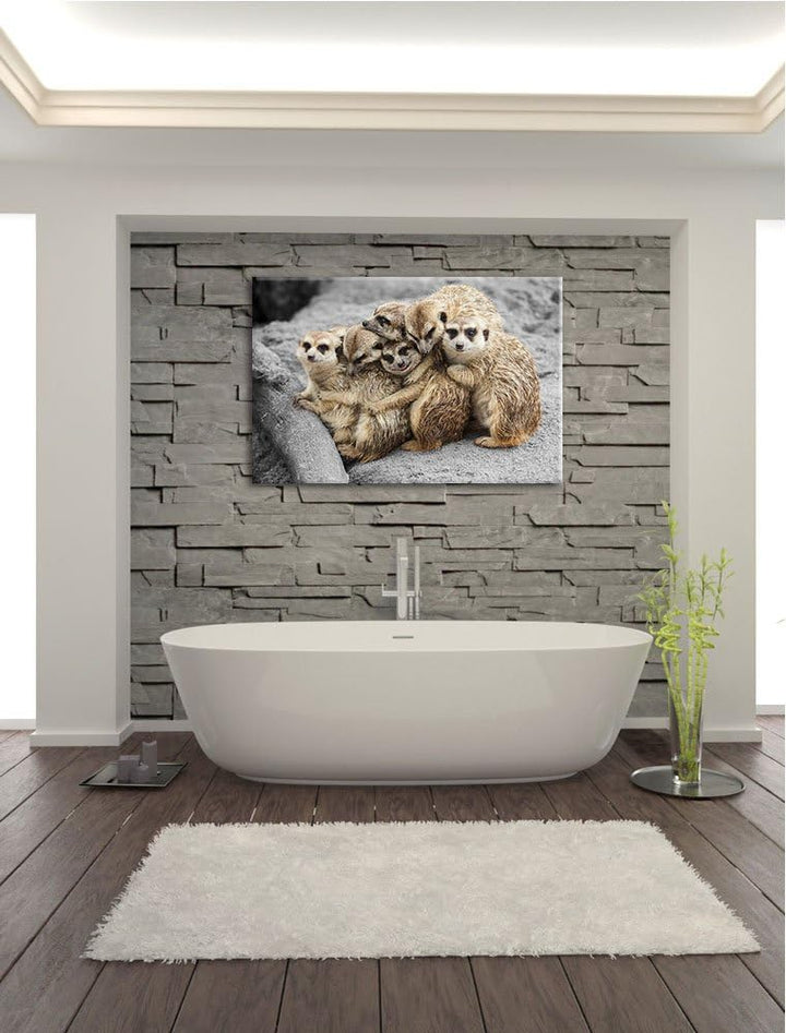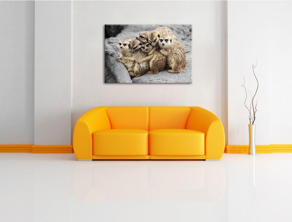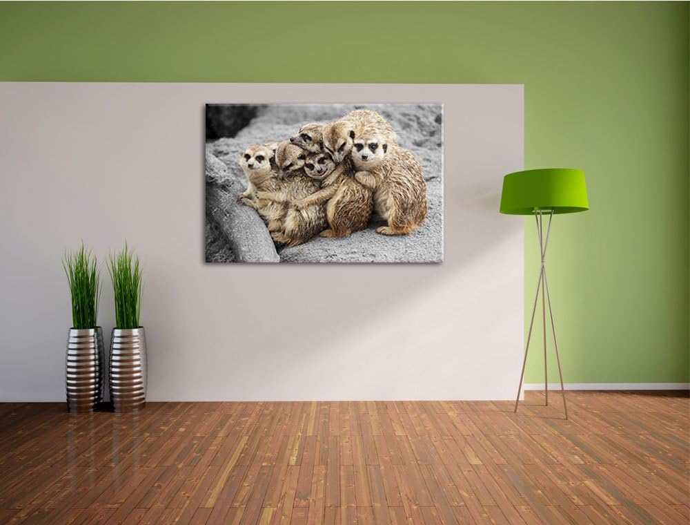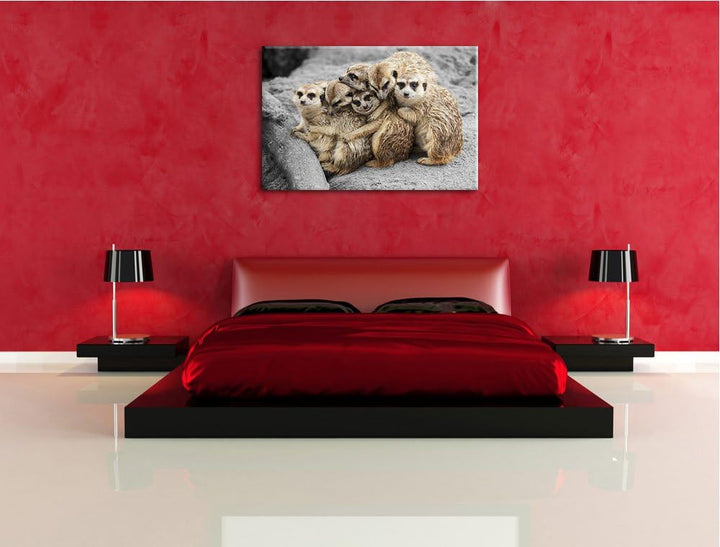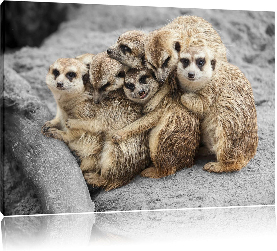 süsse Erdmännchen kuscheln schwarz/weiss Format: 100x70 auf Leinwand, XXL riesige Bilder fertig gera