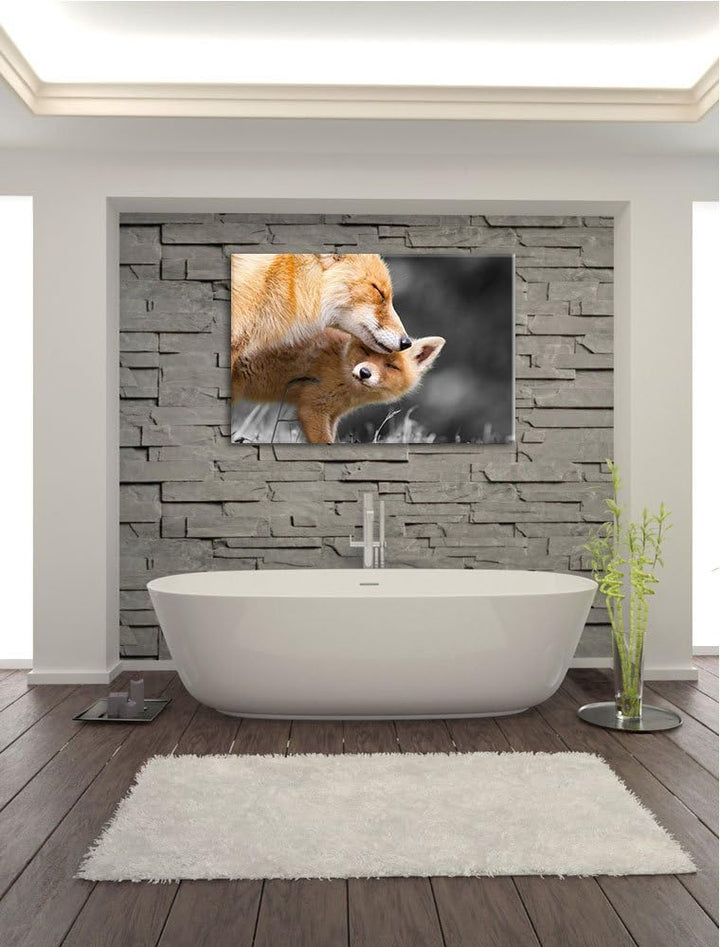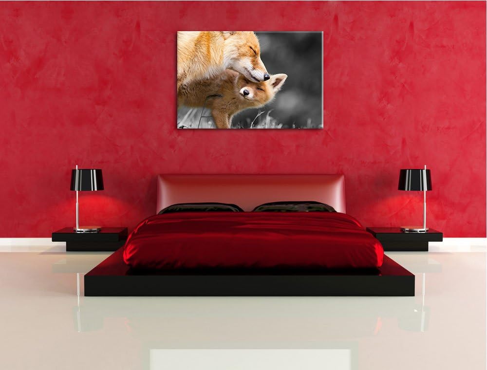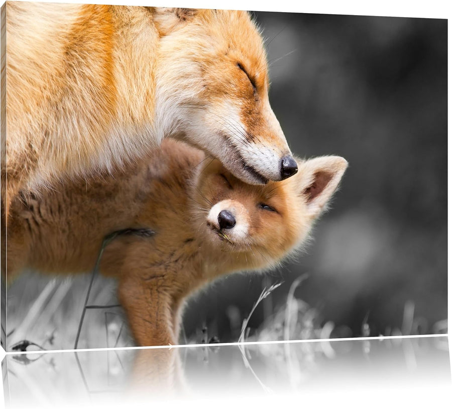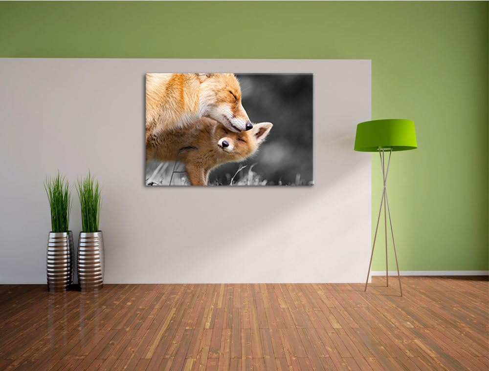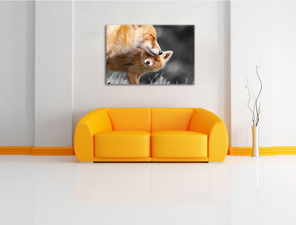 süsse kuschelnden Füchse schwarz/weiss Format: 100x70 auf Leinwand, XXL riesige Bilder fertig gerahm
