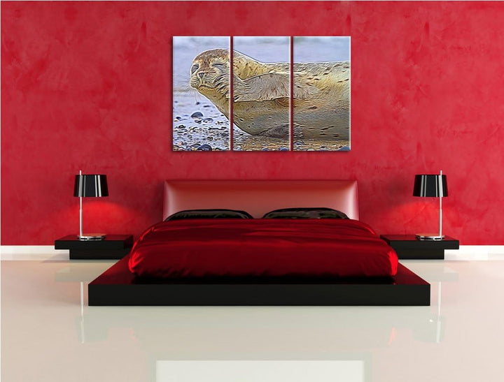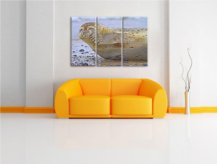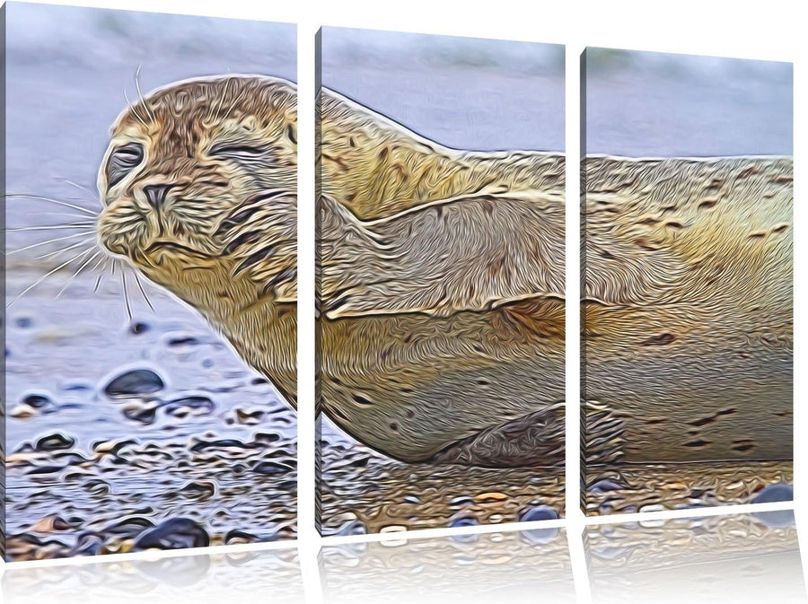 süsse Robbe beim Putzen NewArt 3-Teiler Leinwandbild 120x80 Bild auf Leinwand, XXL riesige Bilder fe