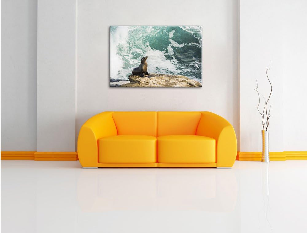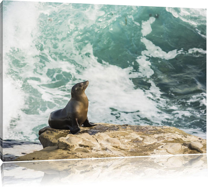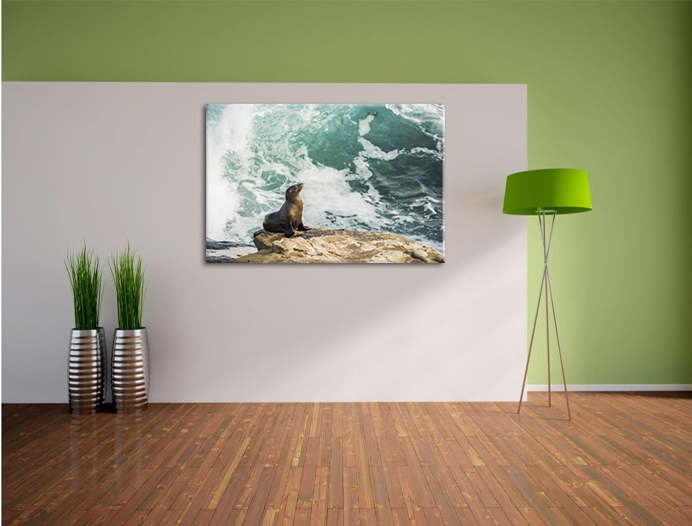 süsse Robbe sonnt sich, Format: 100x70 auf Leinwand, XXL riesige Bilder fertig gerahmt mit Keilrahme