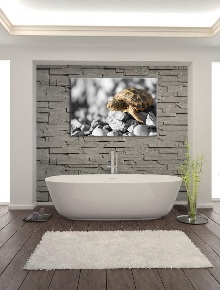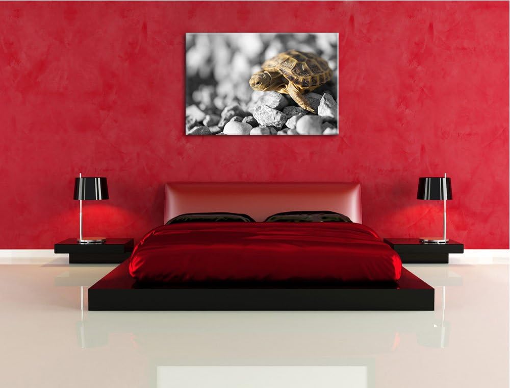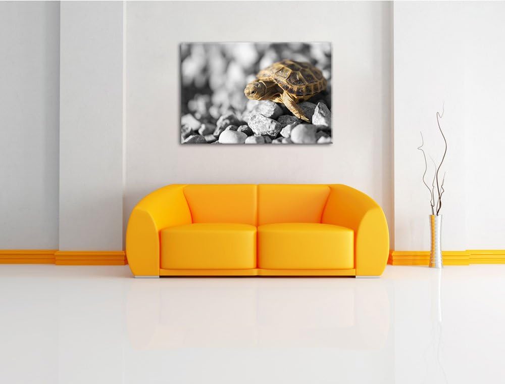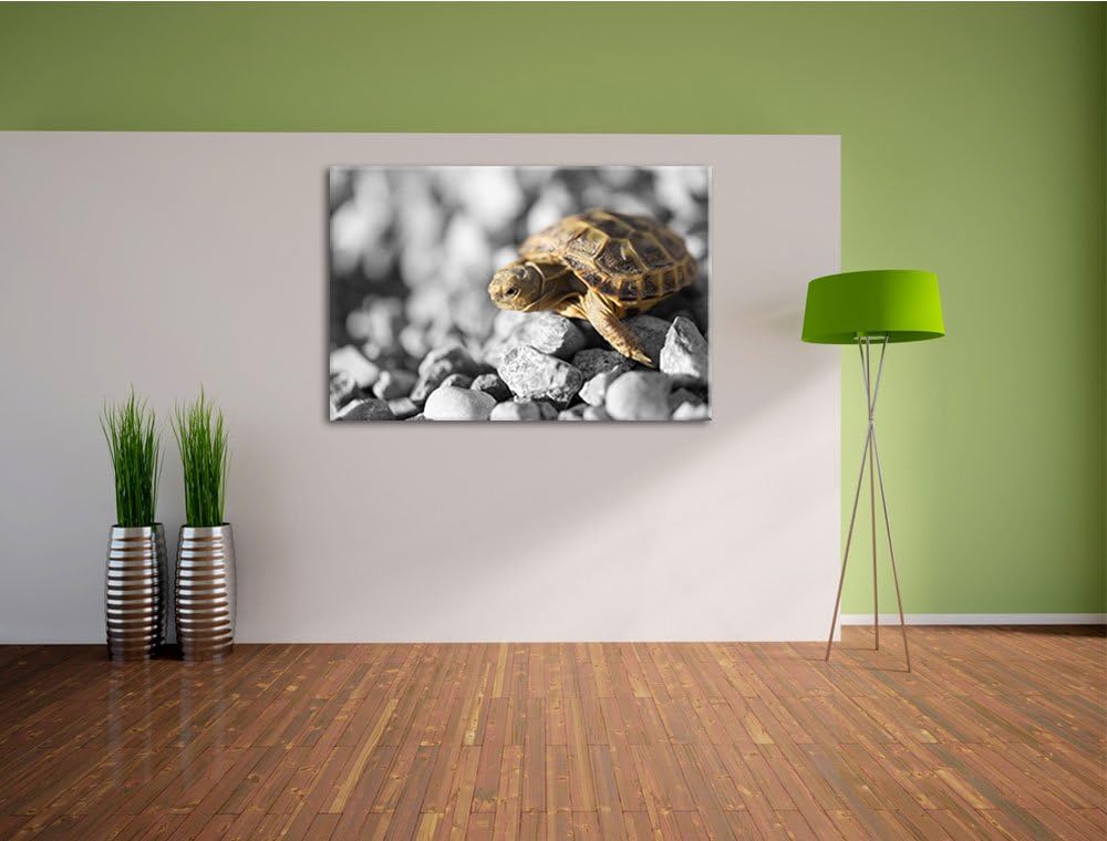 süsse Schildkröte auf Steinen schwarz/weiss Format: 100x70 auf Leinwand, XXL riesige Bilder fertig g