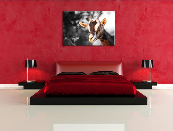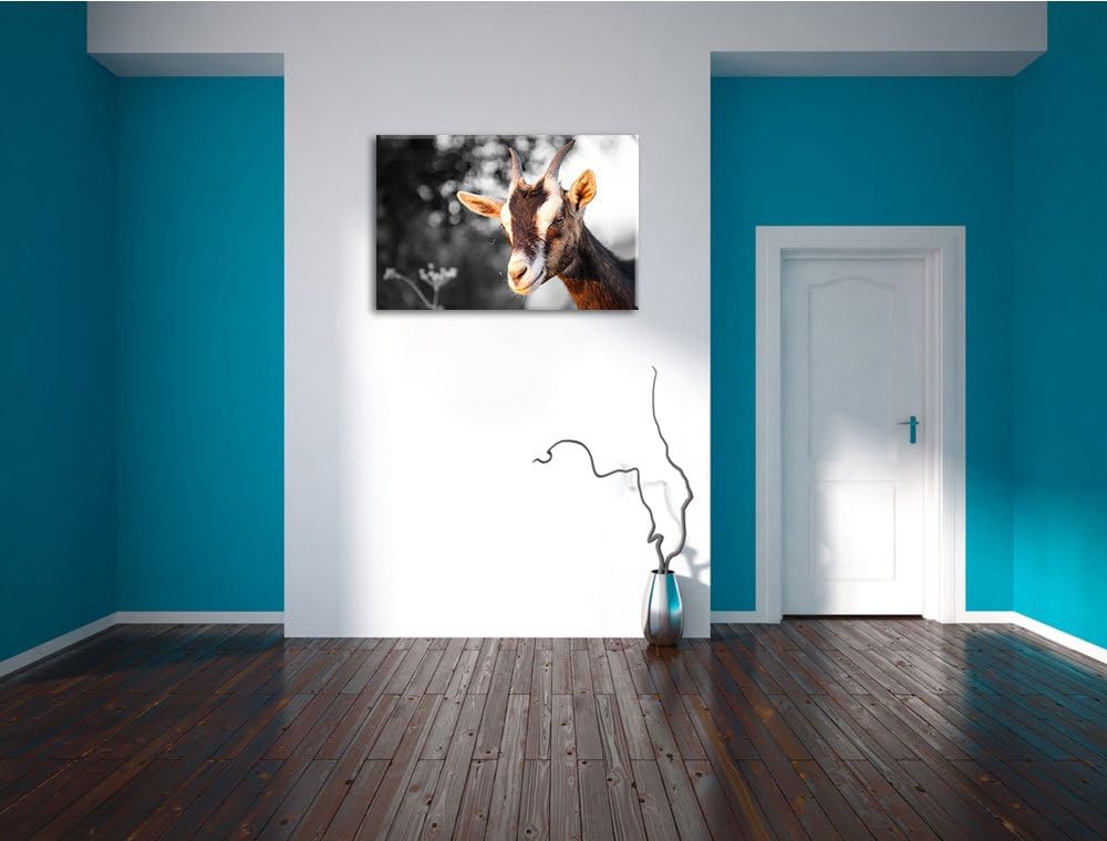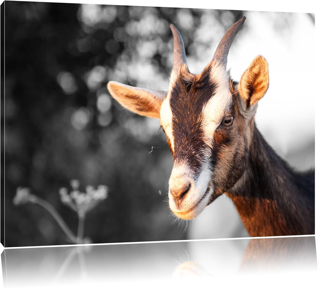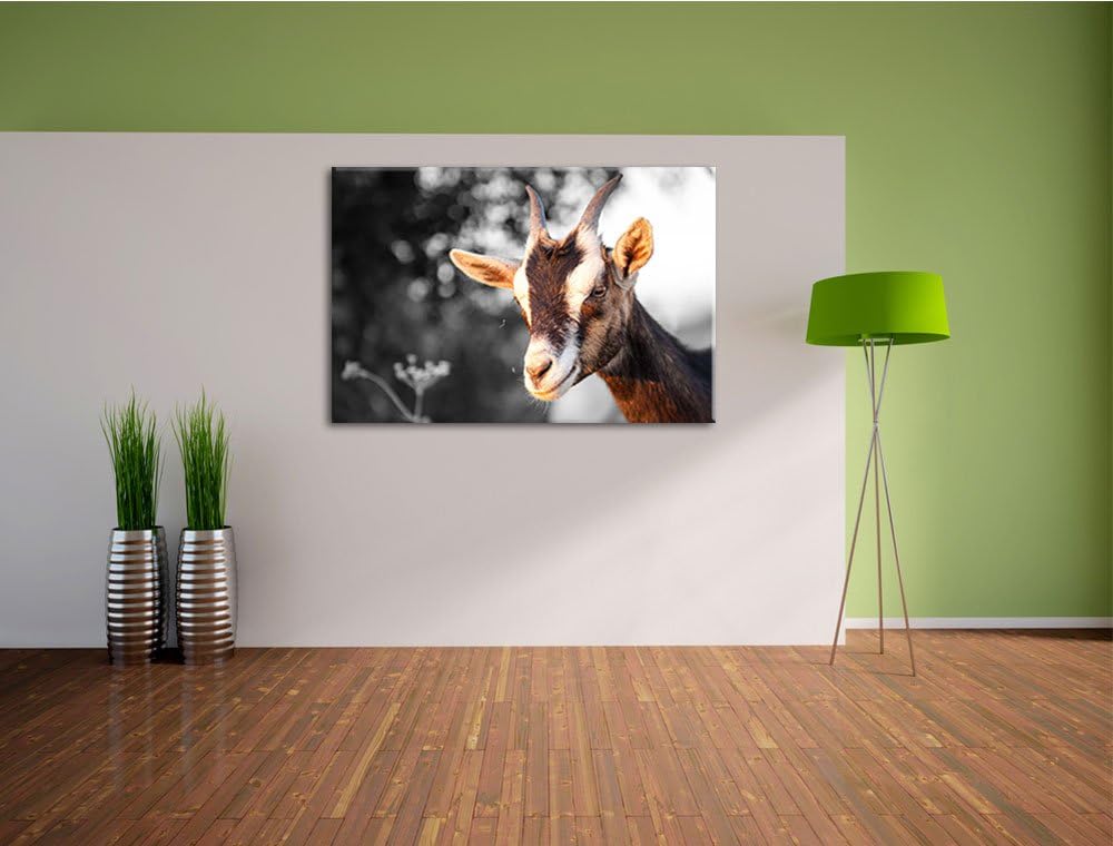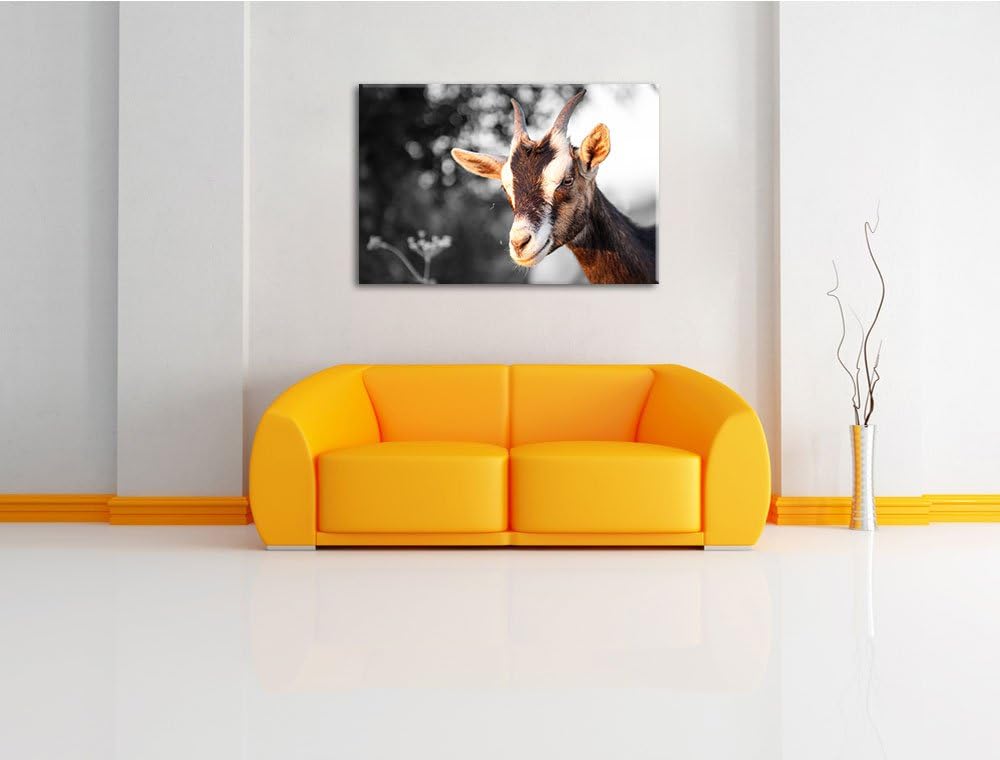süsse Ziege schwarz/weiss Format: 100x70 auf Leinwand, XXL riesige Bilder fertig gerahmt mit Keilrah