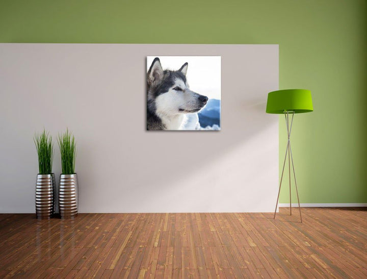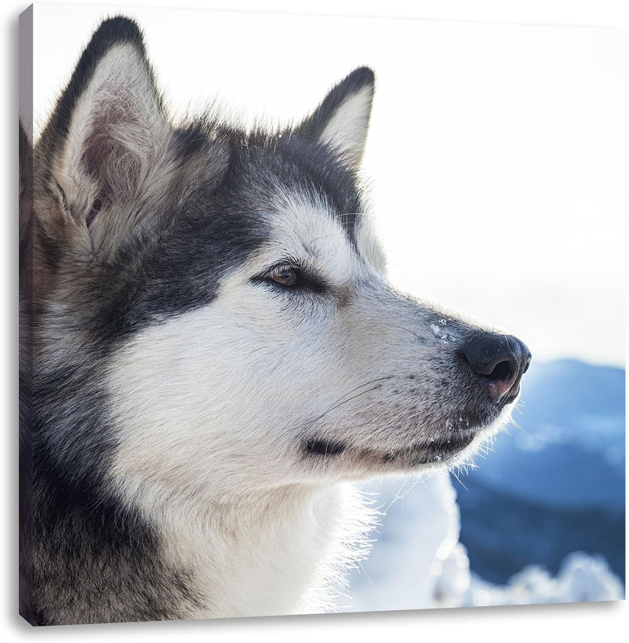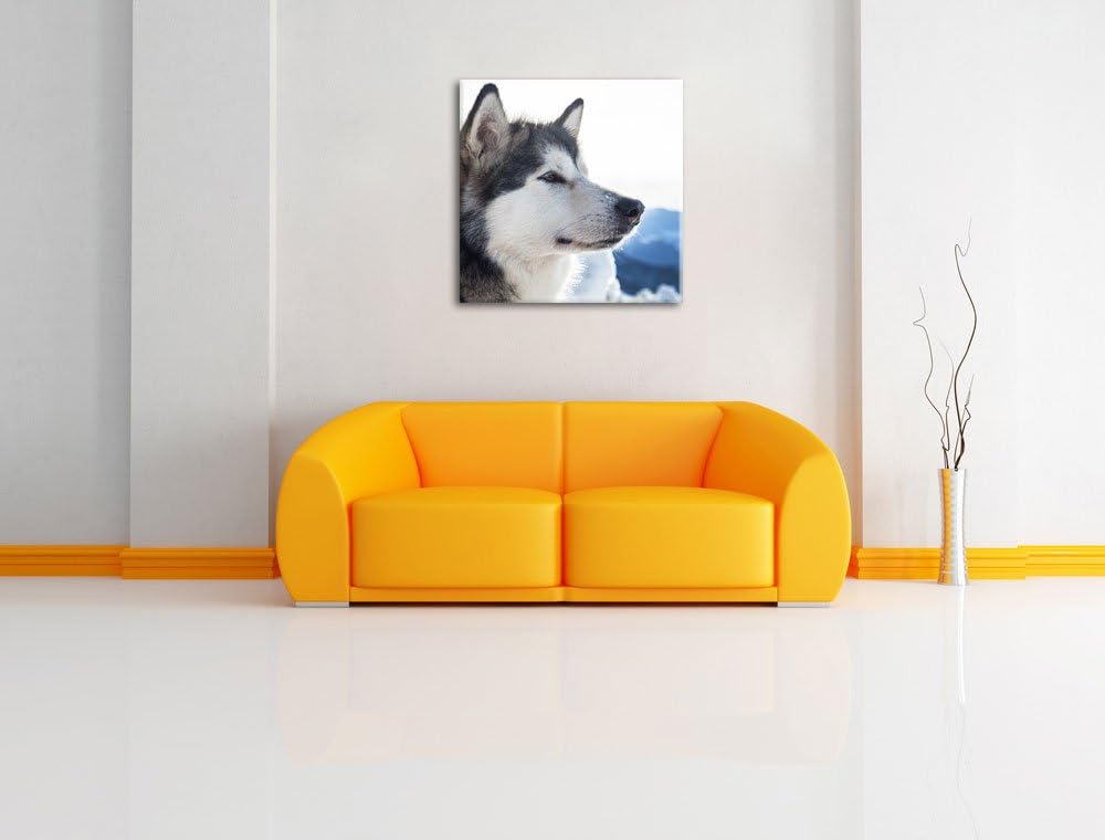 Süsser Husky im Schnee, Format: 70x70 auf Leinwand, XXL riesige Bilder fertig gerahmt mit Keilrahmen
